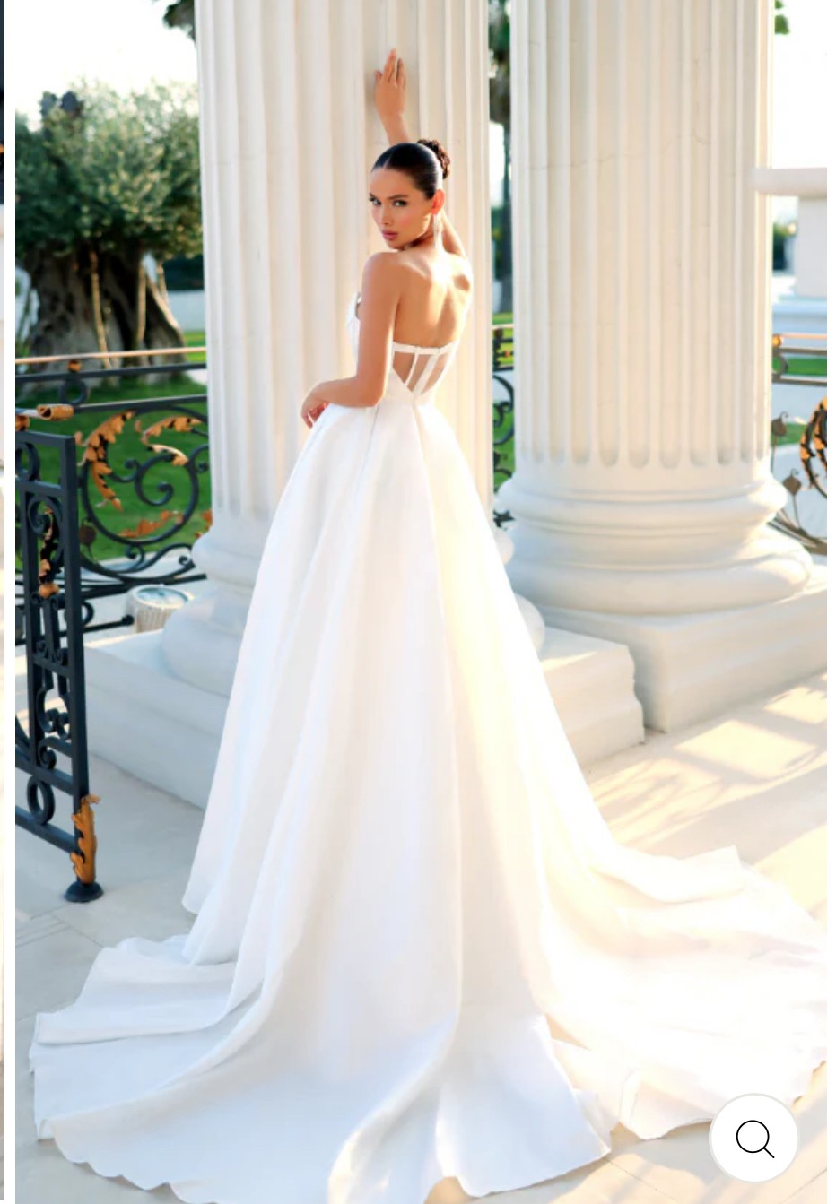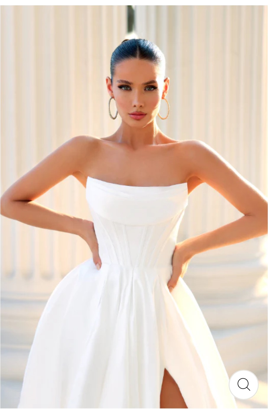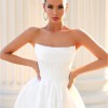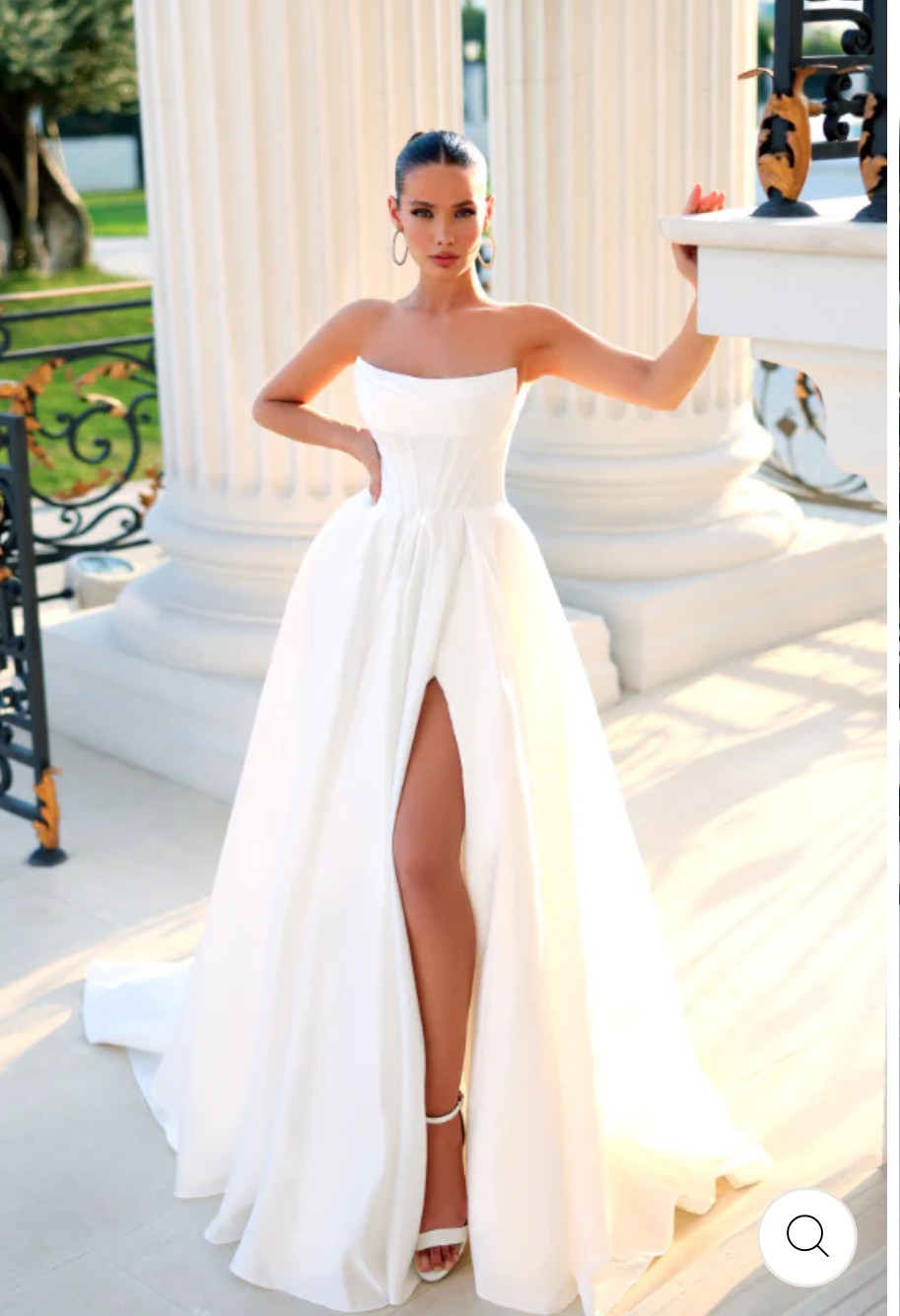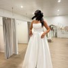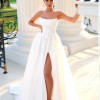 Elegance meets allure in this dress, featuring a scooped strapless neckline, complemented by folded bust detailing. The flowy A-line ball gown silhouette adds a touch of grace, while the seamless thigh-high split introduces a hint of allure and movement. This dress is a perfect blend of sophistication and subtle daring, making it and ideal choice for those who appreciate timeless style with a modern twist.