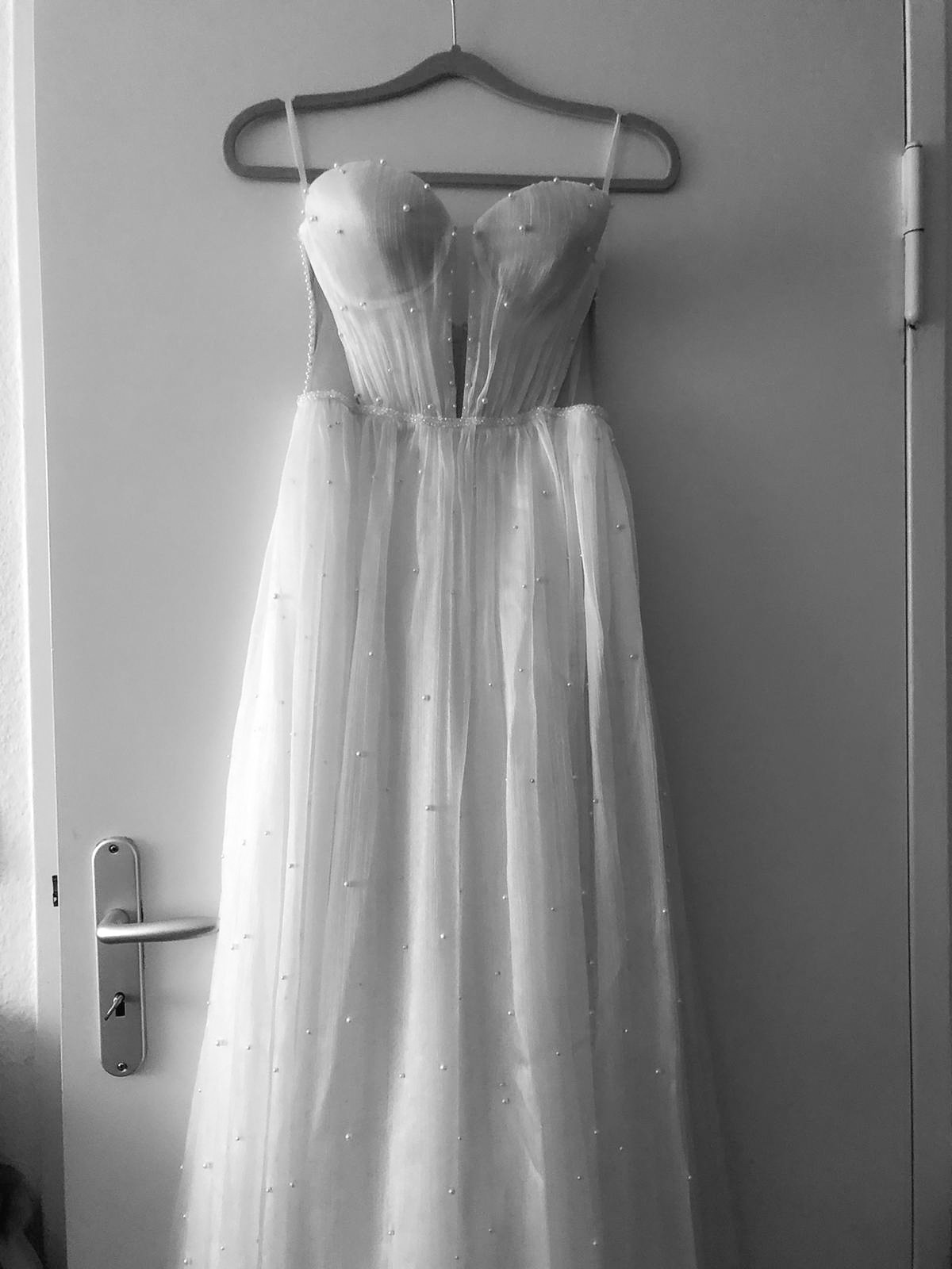 I’m selling my stunning Pronovias “Balia” wedding gown – a true princess dream come to life. The strapless bodice features delicate sheer tulle panels that beautifully define the waist, while the airy pleated organza skirt, sprinkled with tiny pearls, glimmers softly with every step.