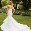 Searching for a wedding dress that's equal parts sexy and sophisticated? Look no further than Indiana, a sexy off-shoulder mermaid wedding dress featuring a sweetheart bodice embellished with delicate sequined lace appliqués. The flattering mermaid silhouette is crafted from cascading layers of glitter and misty tulle and continues round the back to create the train of dreams. Indiana is completed with detachable off-the-shoulder straps offering brides a stylish yet versatile look.