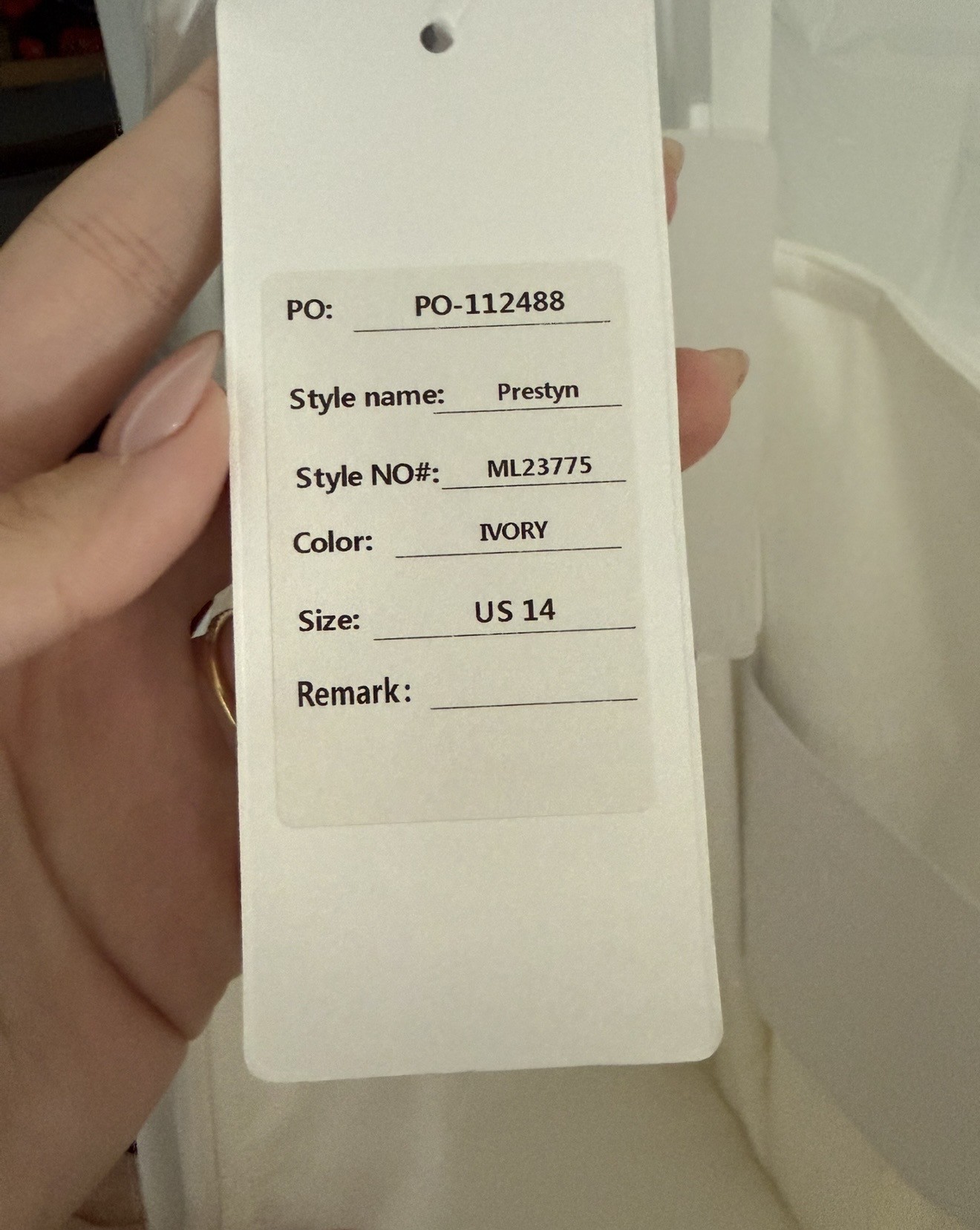 Never worn, never altered — still in the original Madi Lane garment bag with tags attached.