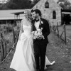 Crafted from luxurious bright ivory woven taffeta, Miles delivers structure, movement and that subtle sheen that photographs beautifully in every light. The signature Basque waistline creates a stunning hourglass silhouette, flowing into a full, dramatic ballgown skirt that manages to feel grand yet effortlessly light.