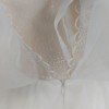 The skirt flows into a full, lightweight tulle silhouette, creating an ethereal look that moves gracefully with every step. The dress offers a flattering, feminine shape while keeping a timeless bridal feel.