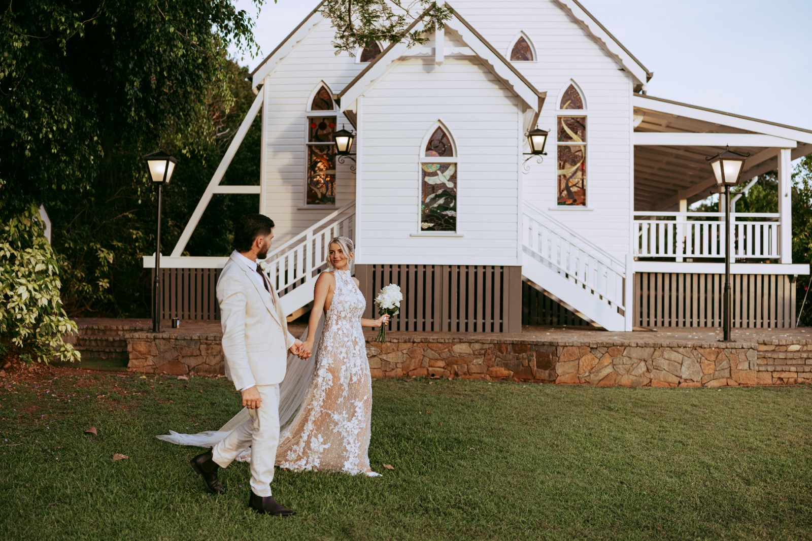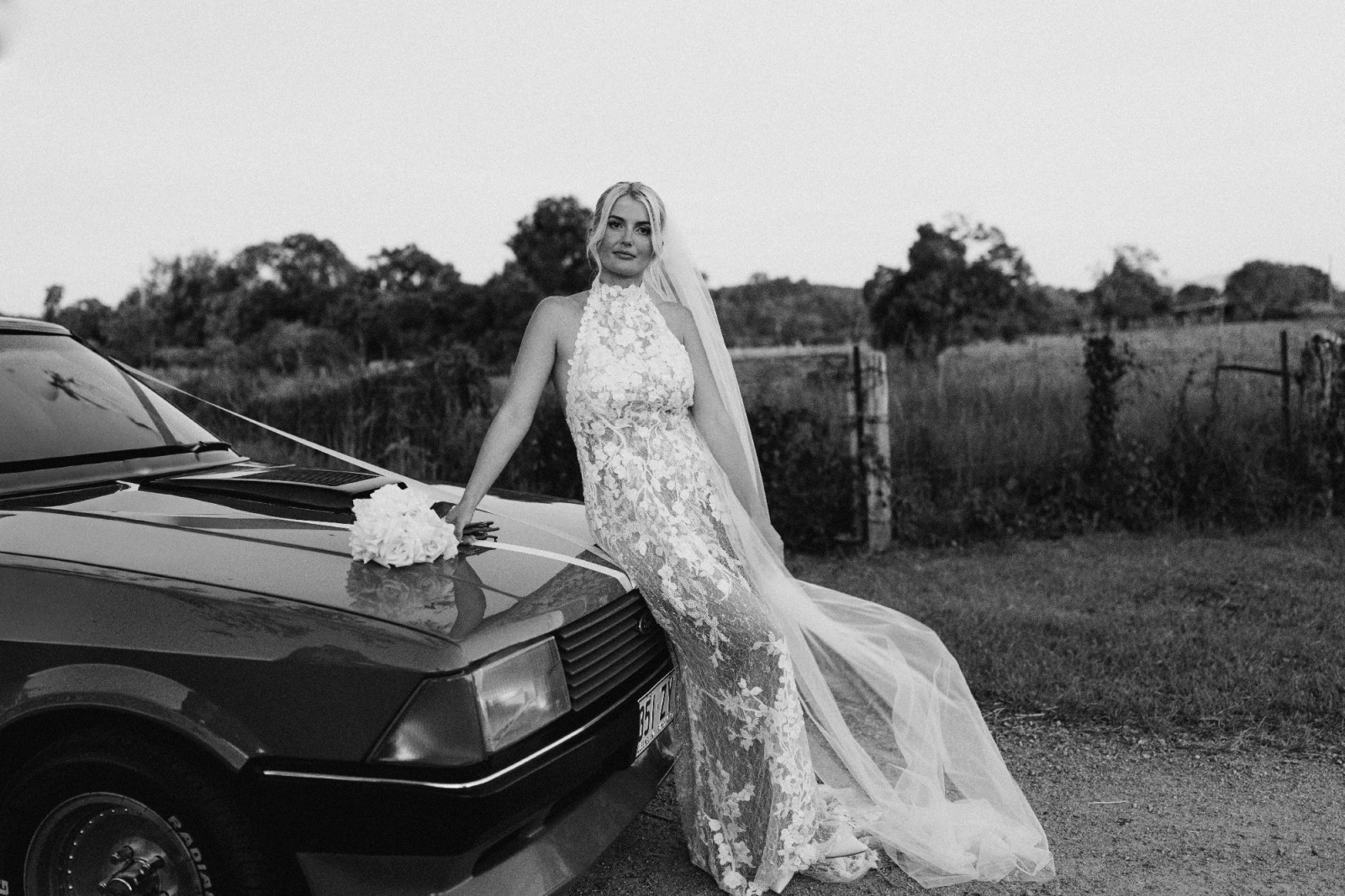 Featuring a high neckline with 3D florals, emulating being wrapped in lace.