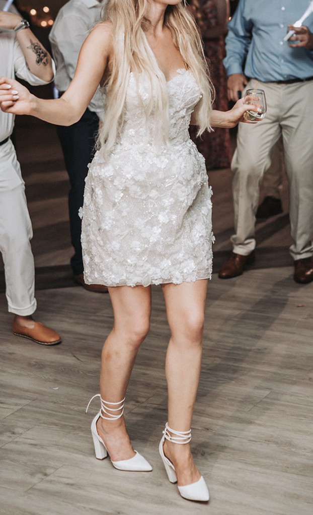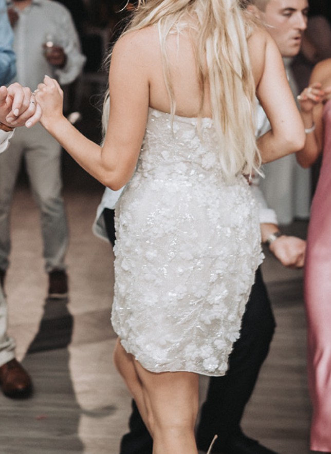 This was the perfect wedding reception dress! I wore this for about 2 hours and didn't wear the sparkly sleeves that came with the dress but will provide them.