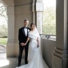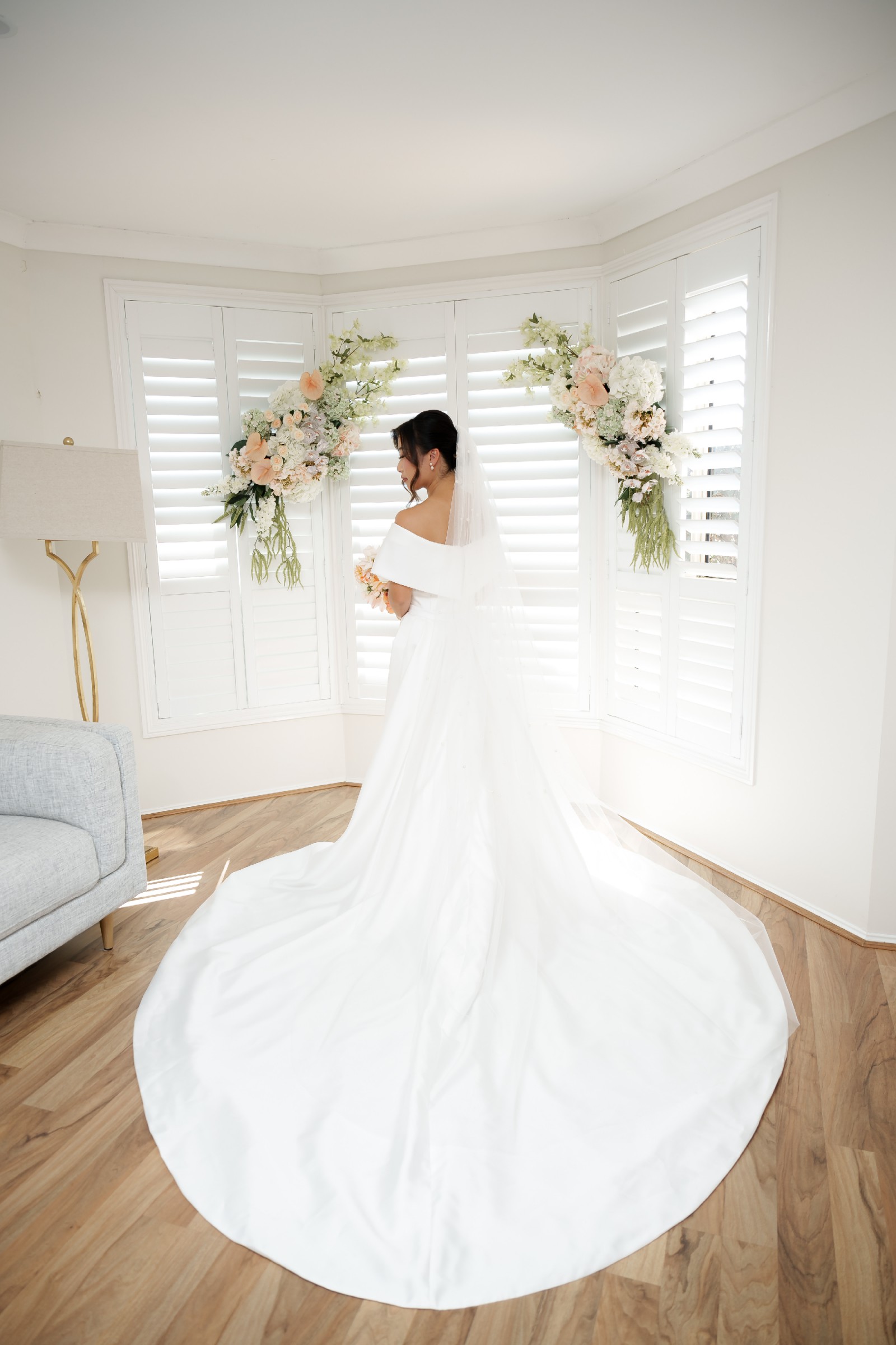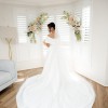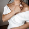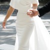 The detachable overskirt fastens neatly at the waist and flows into a dramatic long train, perfect for adding extra impact down the aisle. Remove the skirt for a versatile, second look at your reception. Two elegant looks in one.