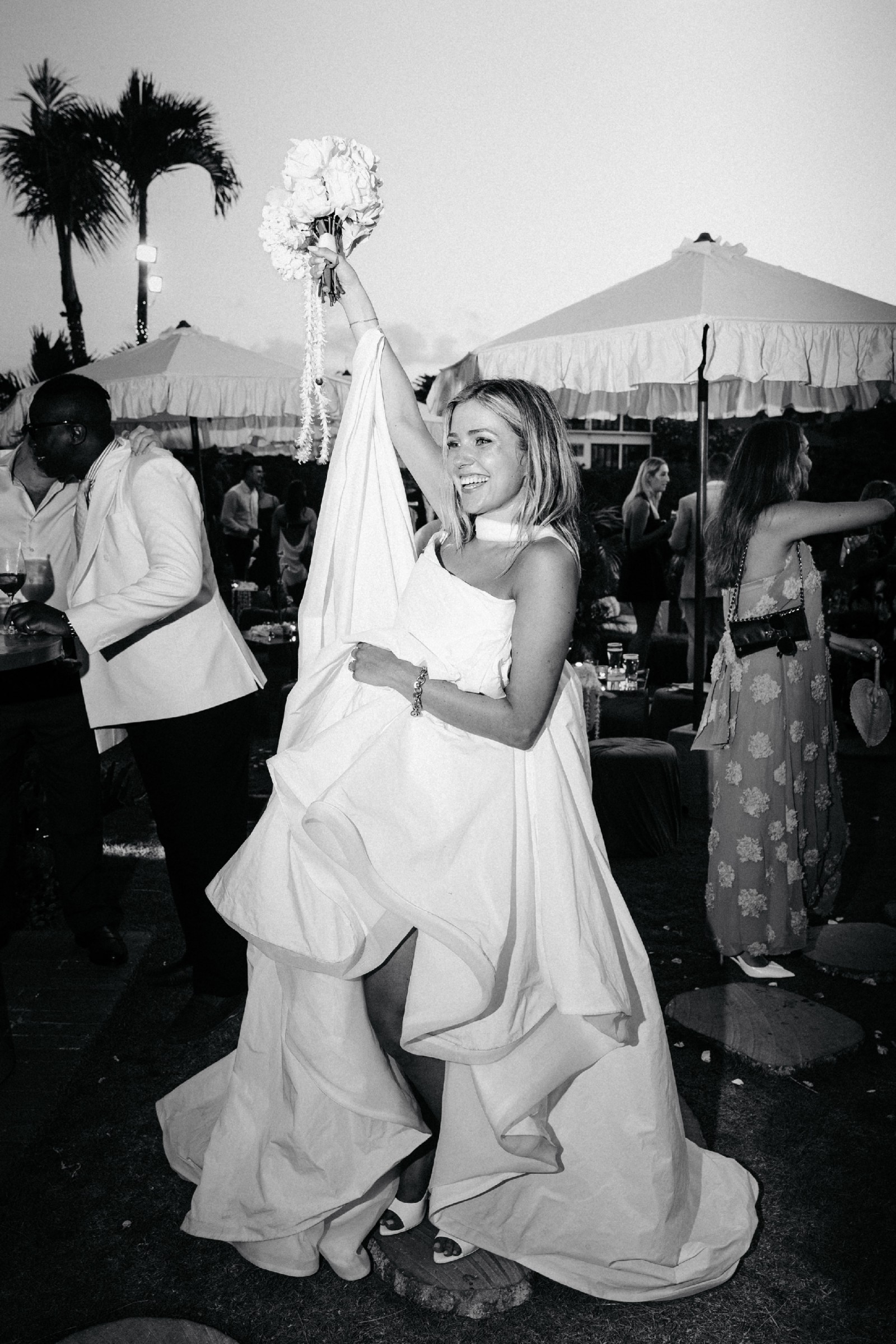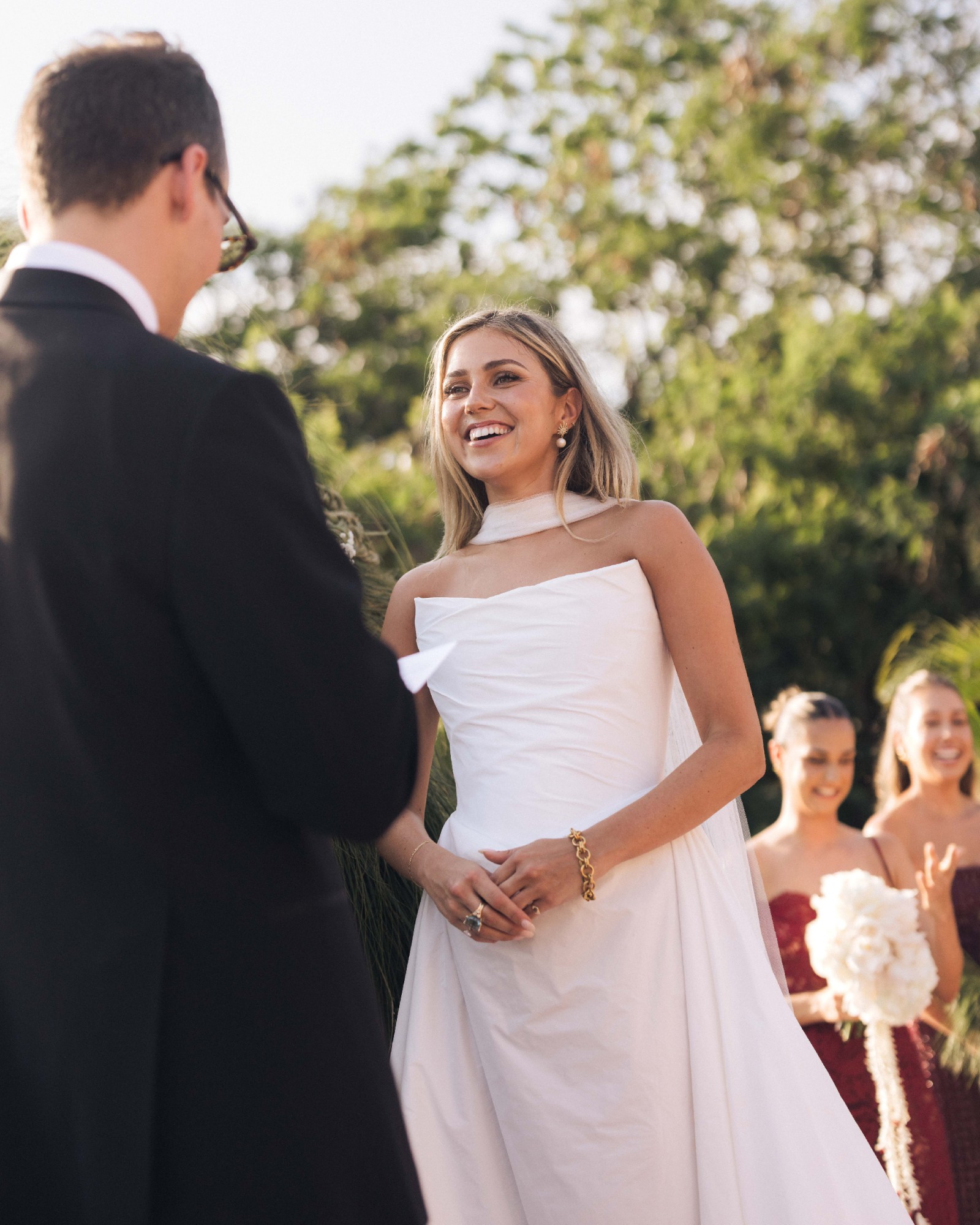 - Strapless draped bodice for a sculpted fit