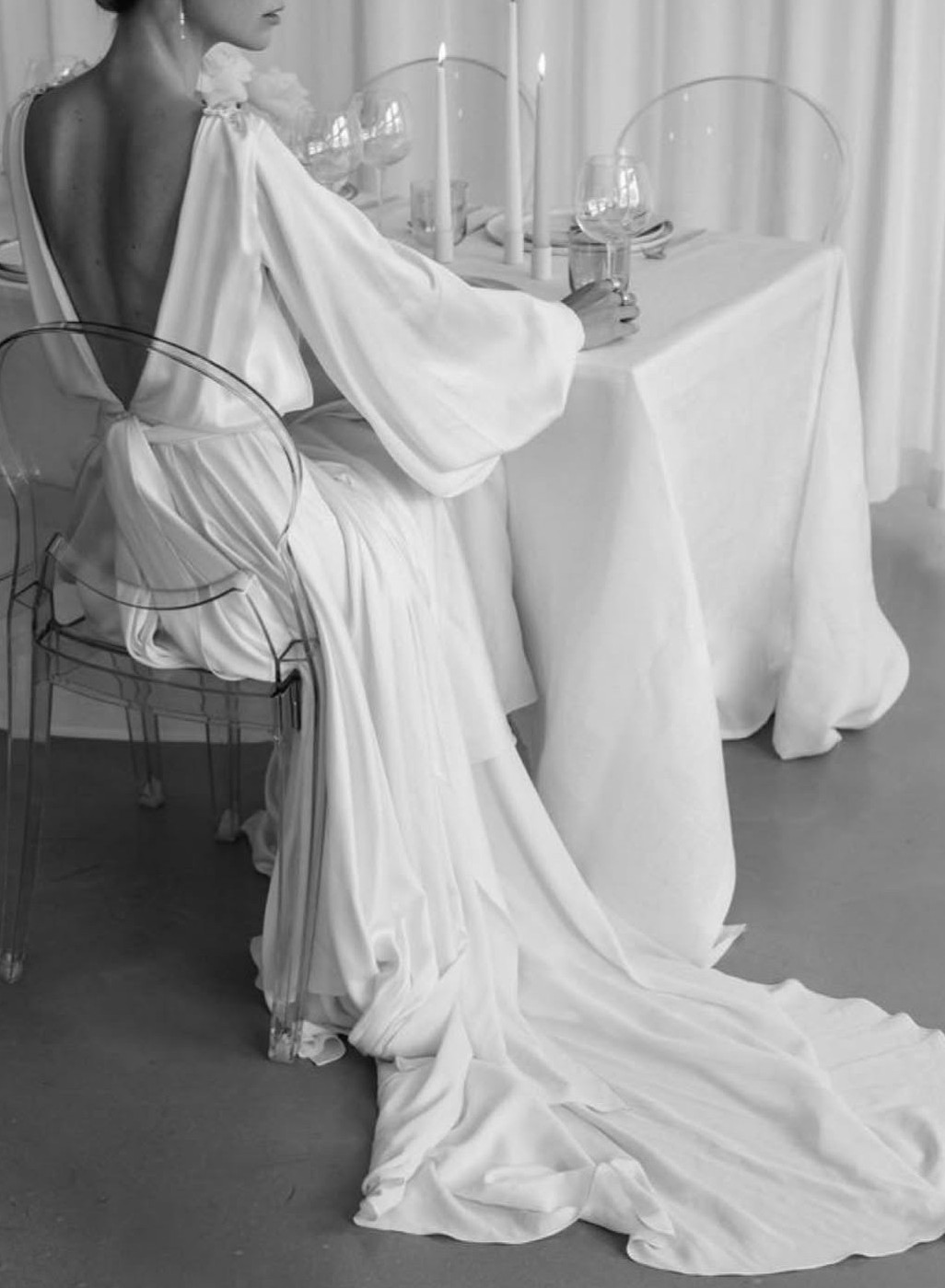 The gown is made from 100% pure Italian silk and lined in French silk crepe de chine ( which is an under wear weight silk )