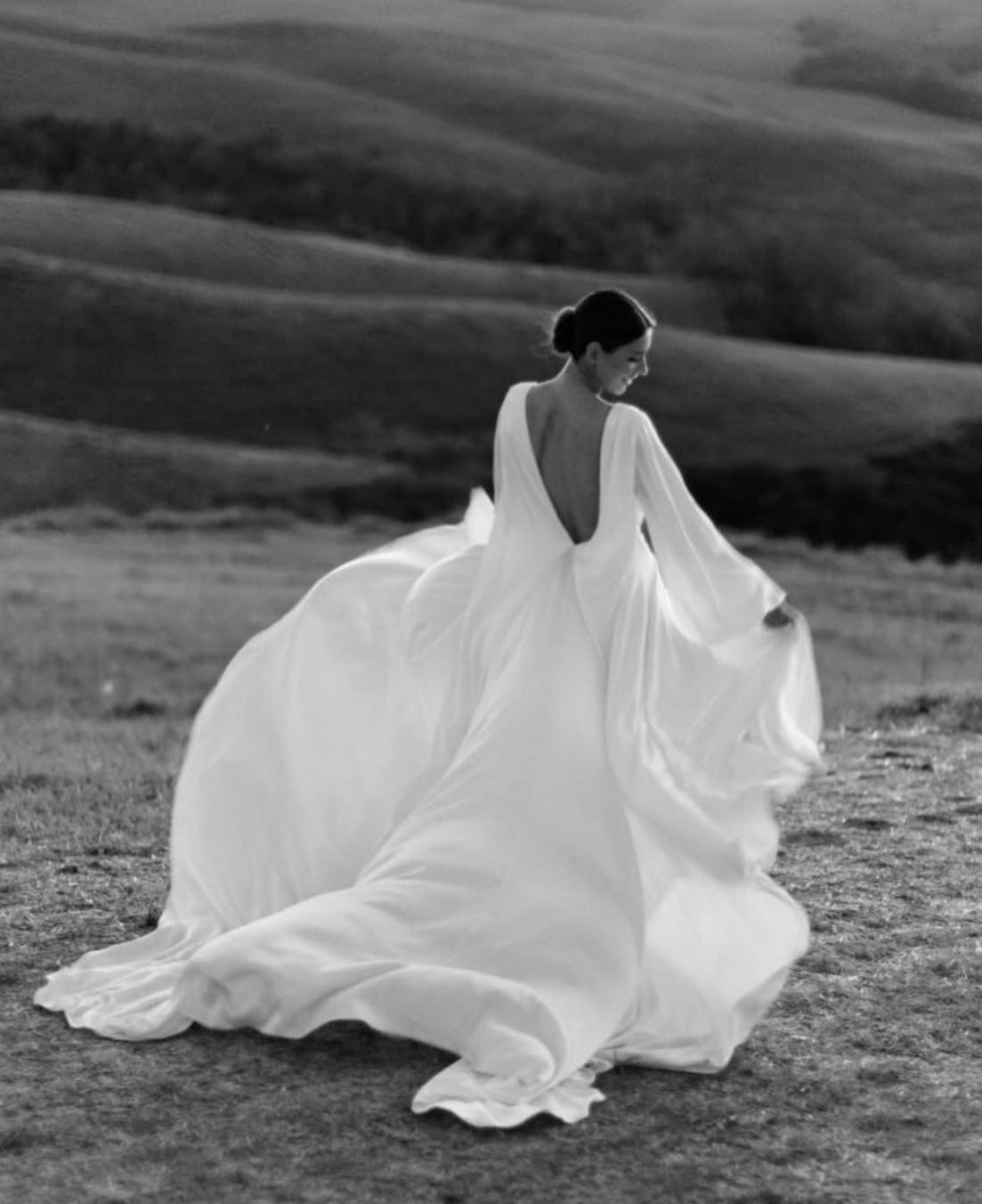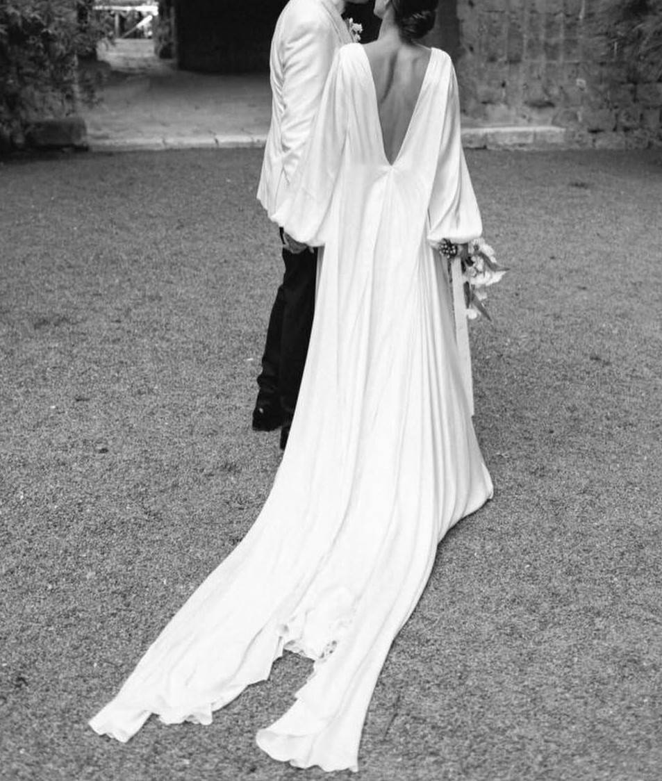 Lovely long billowing train which floats with you rather than being heavy like other gowns.