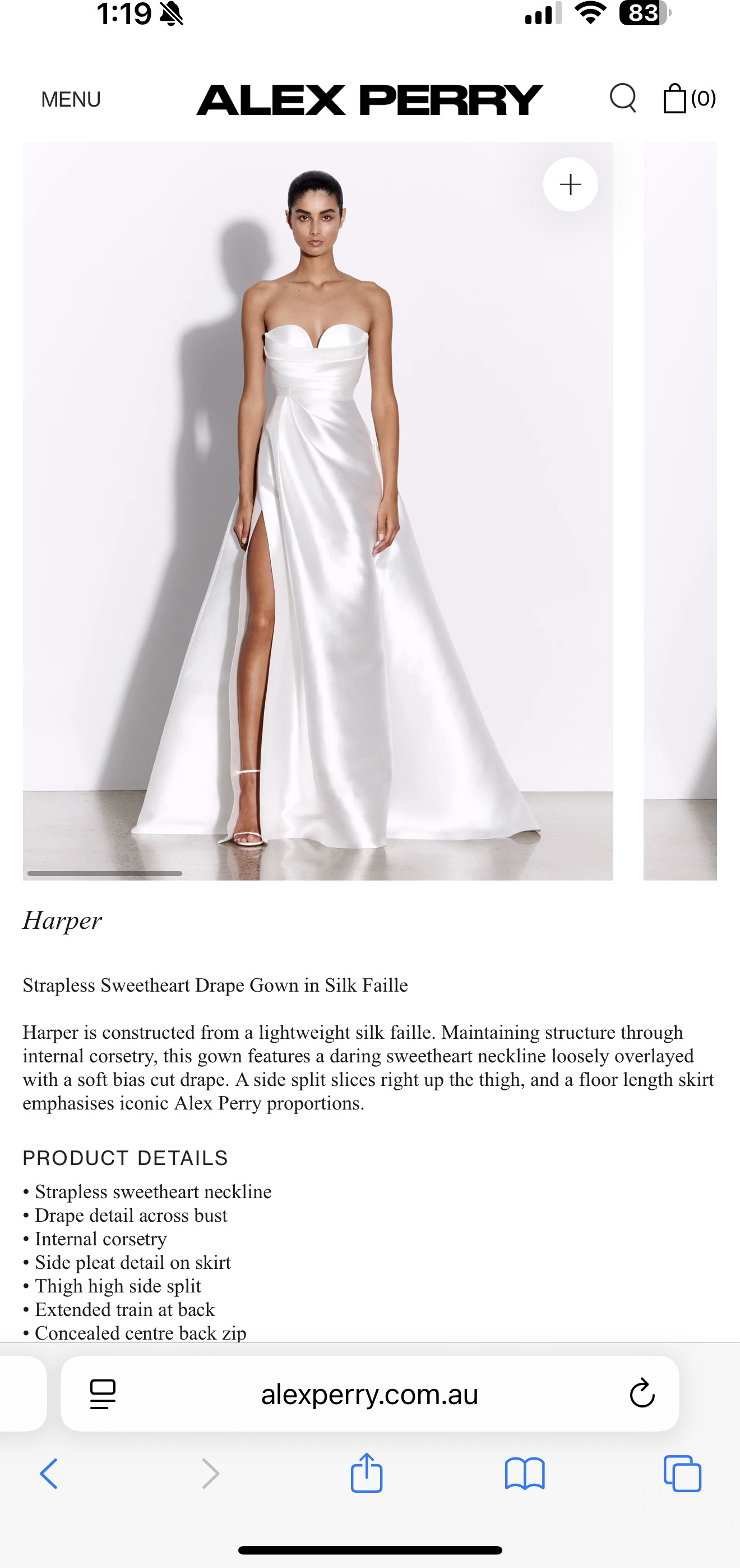 Strapless Sweetheart Drape Gown in Silk Faille Harper is constructed from a lightweight silk faille. Maintaining structure through internal corsetry, this gown features a daring sweetheart neckline loosely overlayed with a soft bias cut drape. A side split slices right up the thigh, and a floor length skirt emphasises iconic Alex Perry proportions. PRODUCT DETAILS • Strapless sweetheart neckline • Drape detail across bust • Internal corsetry • Side pleat detail on skirt • Thigh high side split • Extended train at back • Concealed centre back zip • Buttons with rouleau loop to waist • Concealed pockets • Light weight fabric handle • 85% Polyester / 15% Silk • Specialised dry clean only • B0080BSS25 Alex Perry is designed to fit close to the body creating a sculpted silhouette. Internal corsetry is utilised to define the figure, and a tighter fit is encouraged to maximise body shaping techniques. For further information or assistance please contact our team.