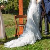 - Dry cleaned and pressed but small amount of dirt stain on lace around bottom of dress