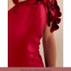 The exquisite floor-length design is adorned with delicate 3D flowers, which cascade gracefully throughout the bodice and down the skirt. These intricate floral details are further enhanced by shimmering sequins that catch the light with every movement, creating a captivating shimmer that will leave your guests in awe.