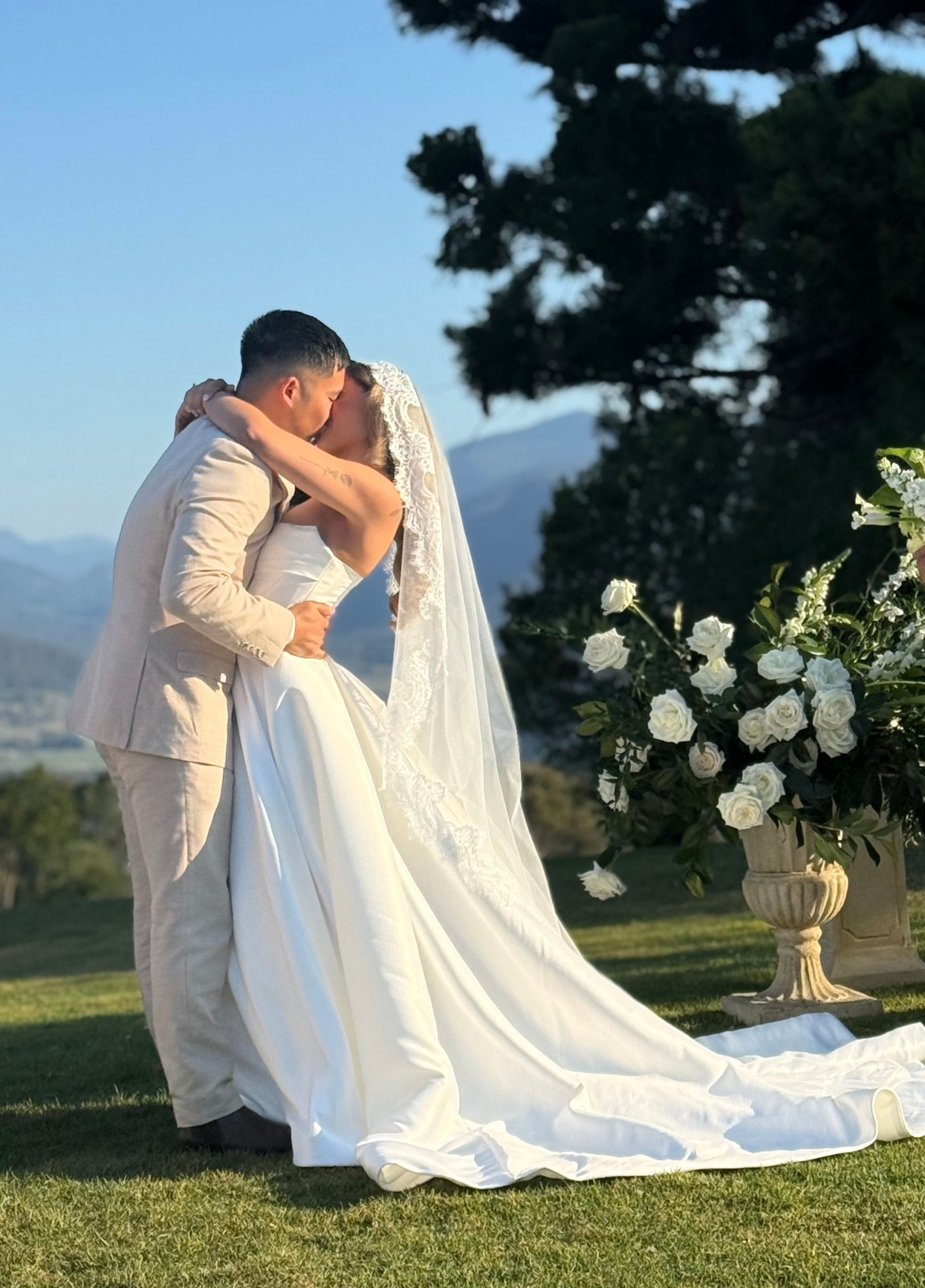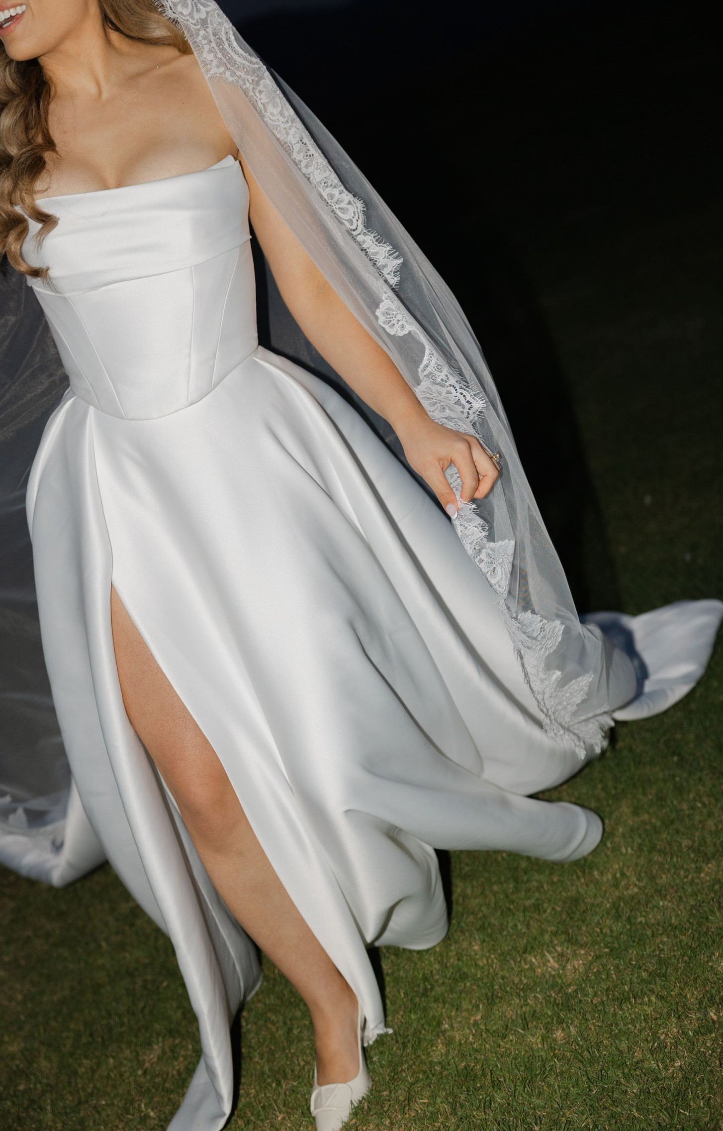 Worn only for a couple of hours prior to changing into a reception dress during dinner service.