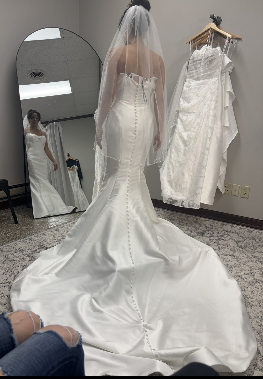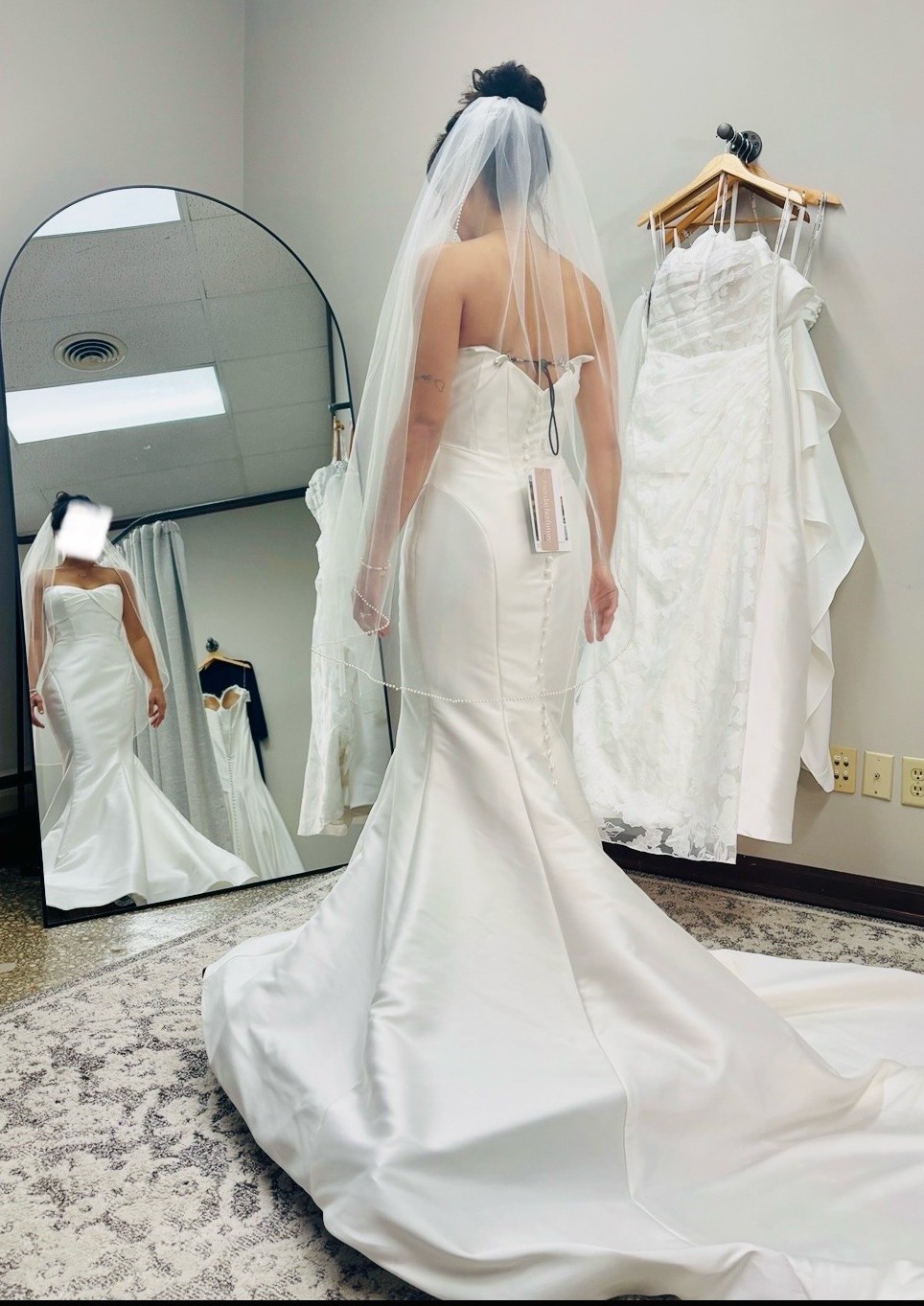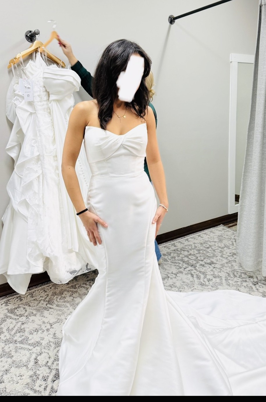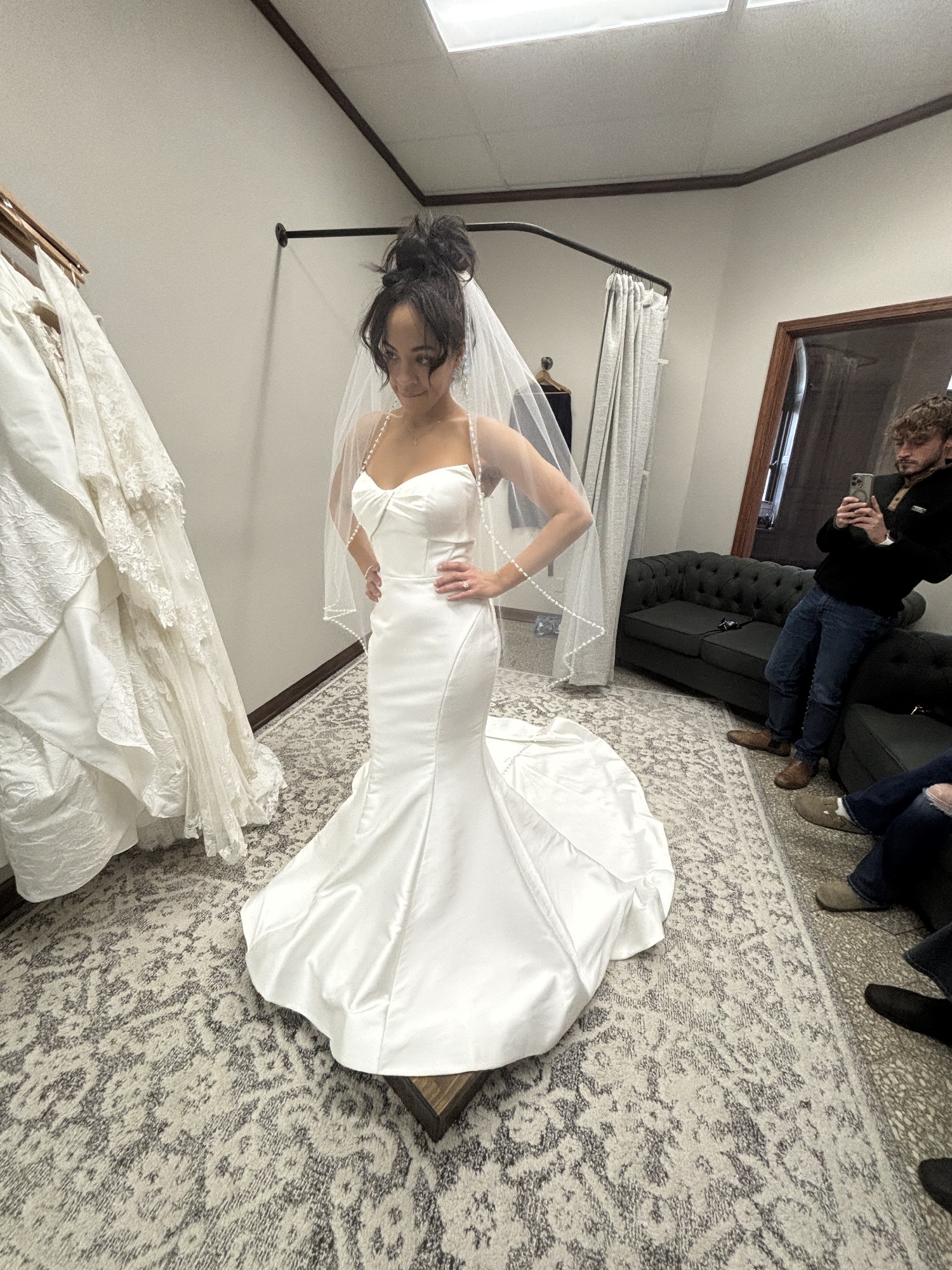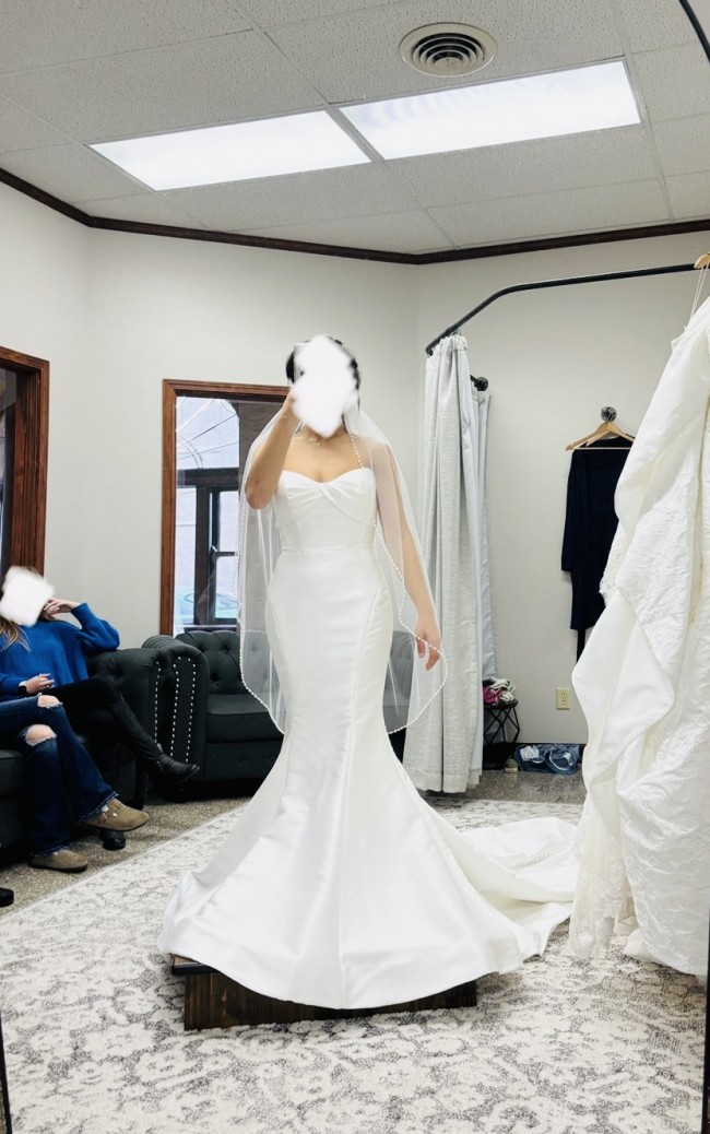 This exquisite Eddy K wedding dress captures the essence of elegance and romance, making it the perfect choice for the modern bride. The striking mermaid silhouette enhances your natural curves, creating a captivating hourglass figure that is sure to leave a lasting impression.