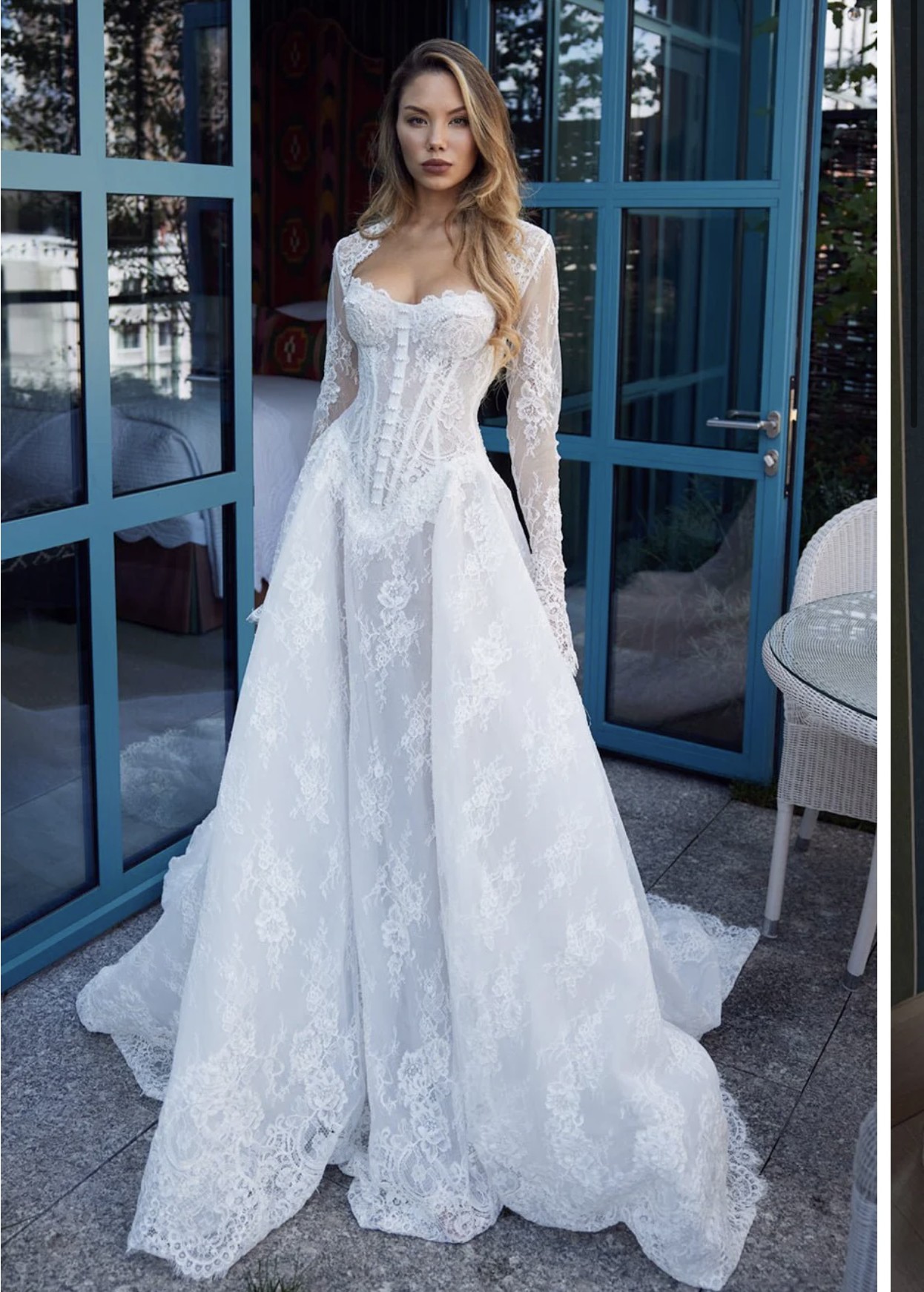 The corset back adds a touch of sophistication while allowing for a customized fit, ensuring you feel comfortable and confident as you walk down the aisle. The floor-length hem cascades beautifully, creating a fairy-tale silhouette that twirls magnificently as you dance the night away.