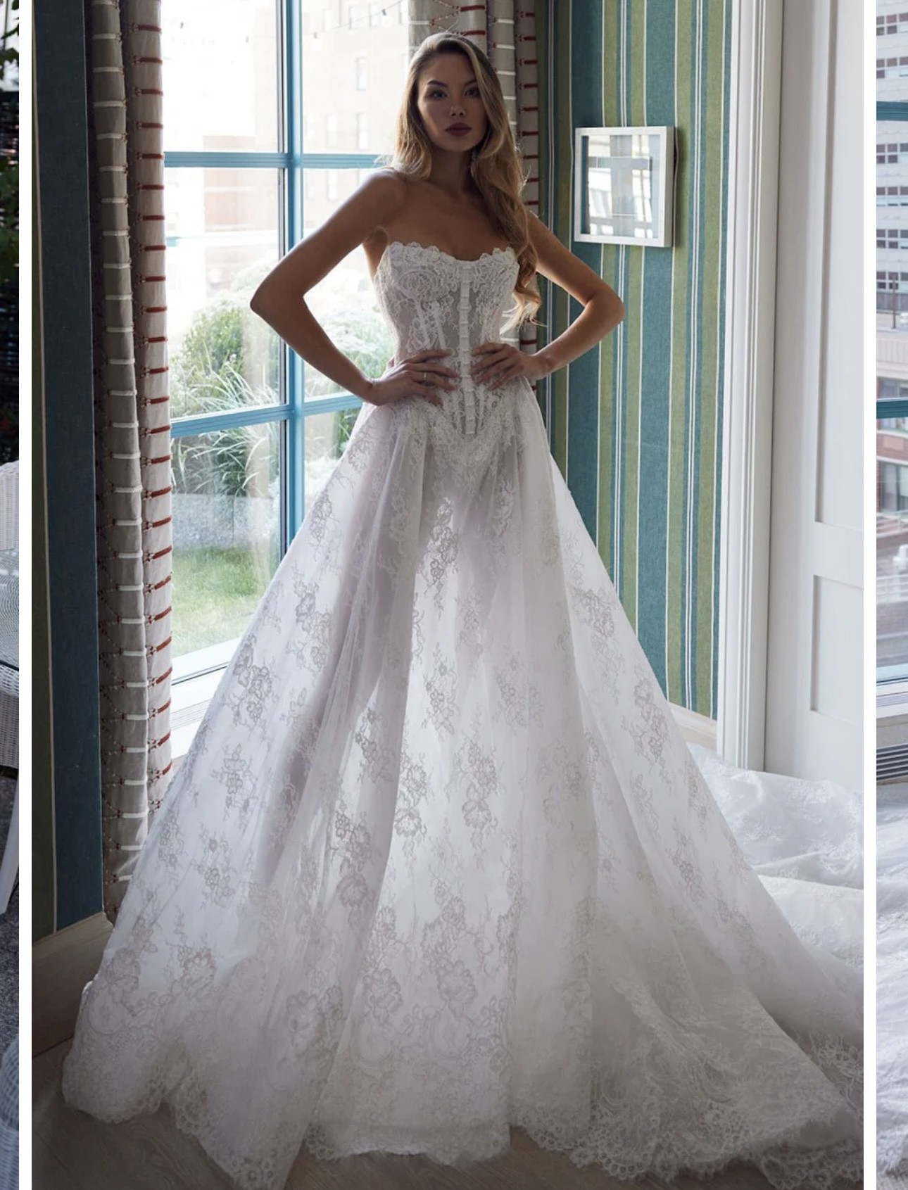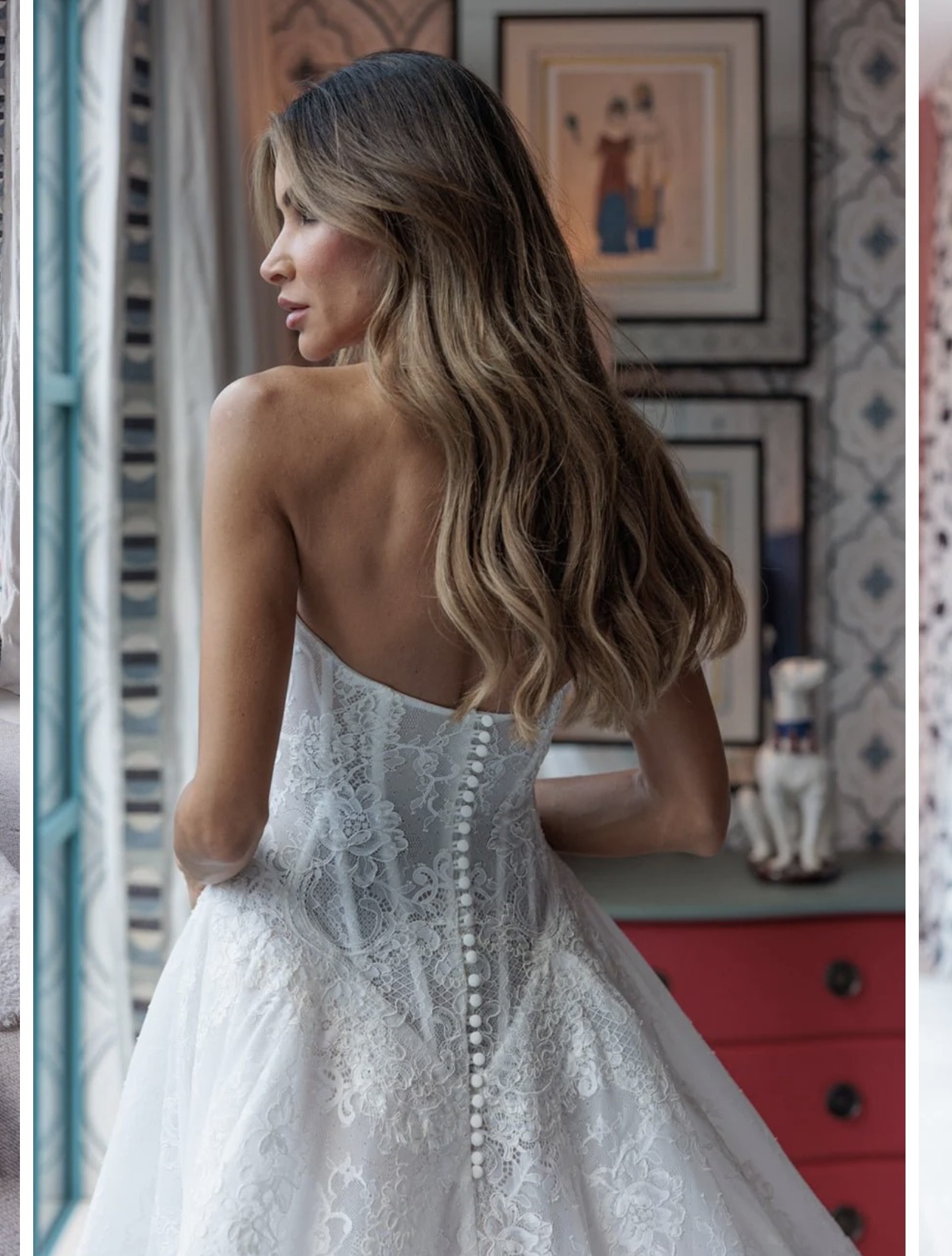 This stunning Vivienne dress by Pallas Couture is a dream come true for any bride wanting to feel like a princess on her special day. Crafted from exquisite lace and adorned with delicate pearls, this ballgown embodies elegance and romance. The sweetheart neckline beautifully complements the strapless design, showcasing a graceful décolletage that is both timeless and modern.