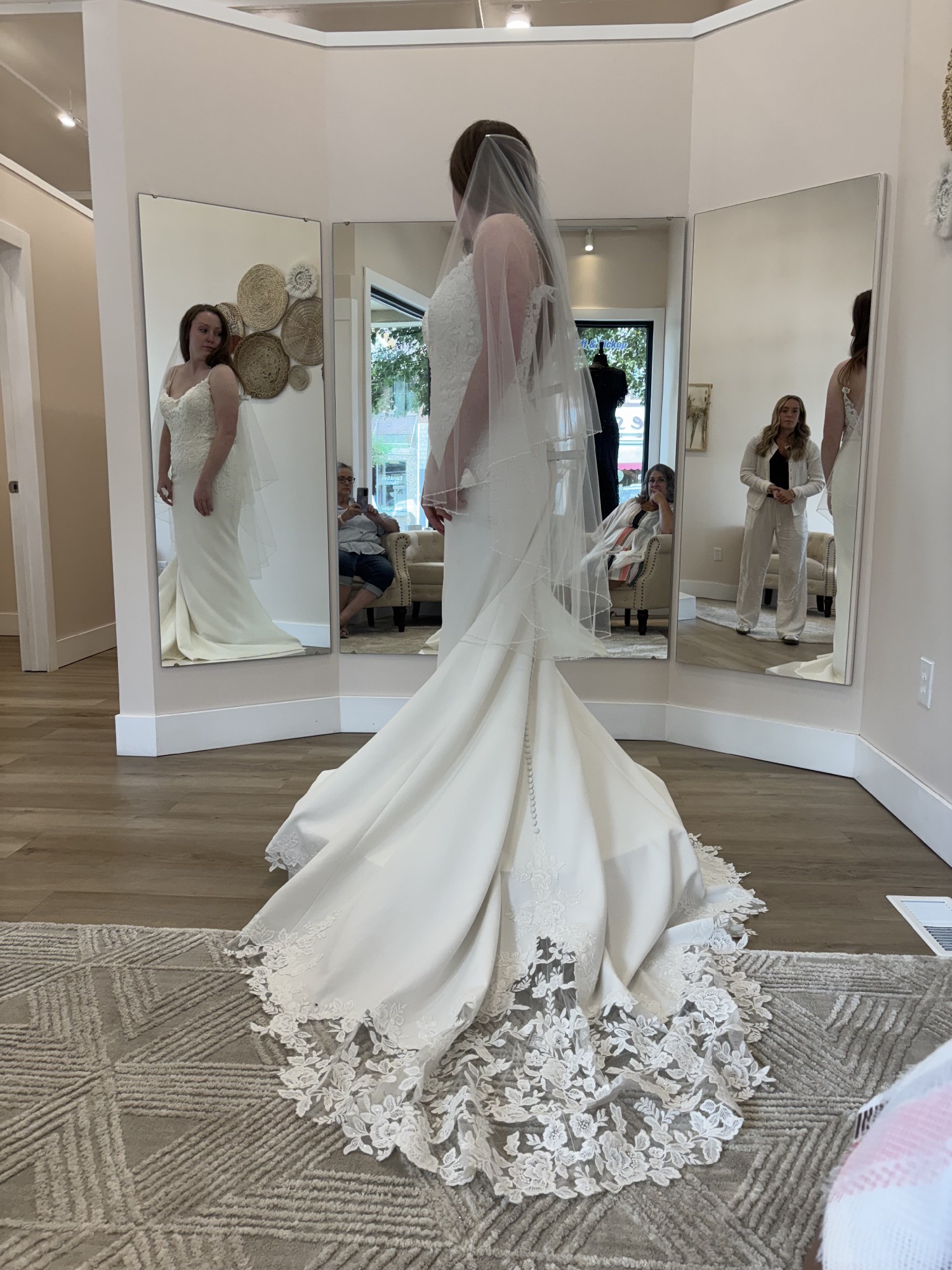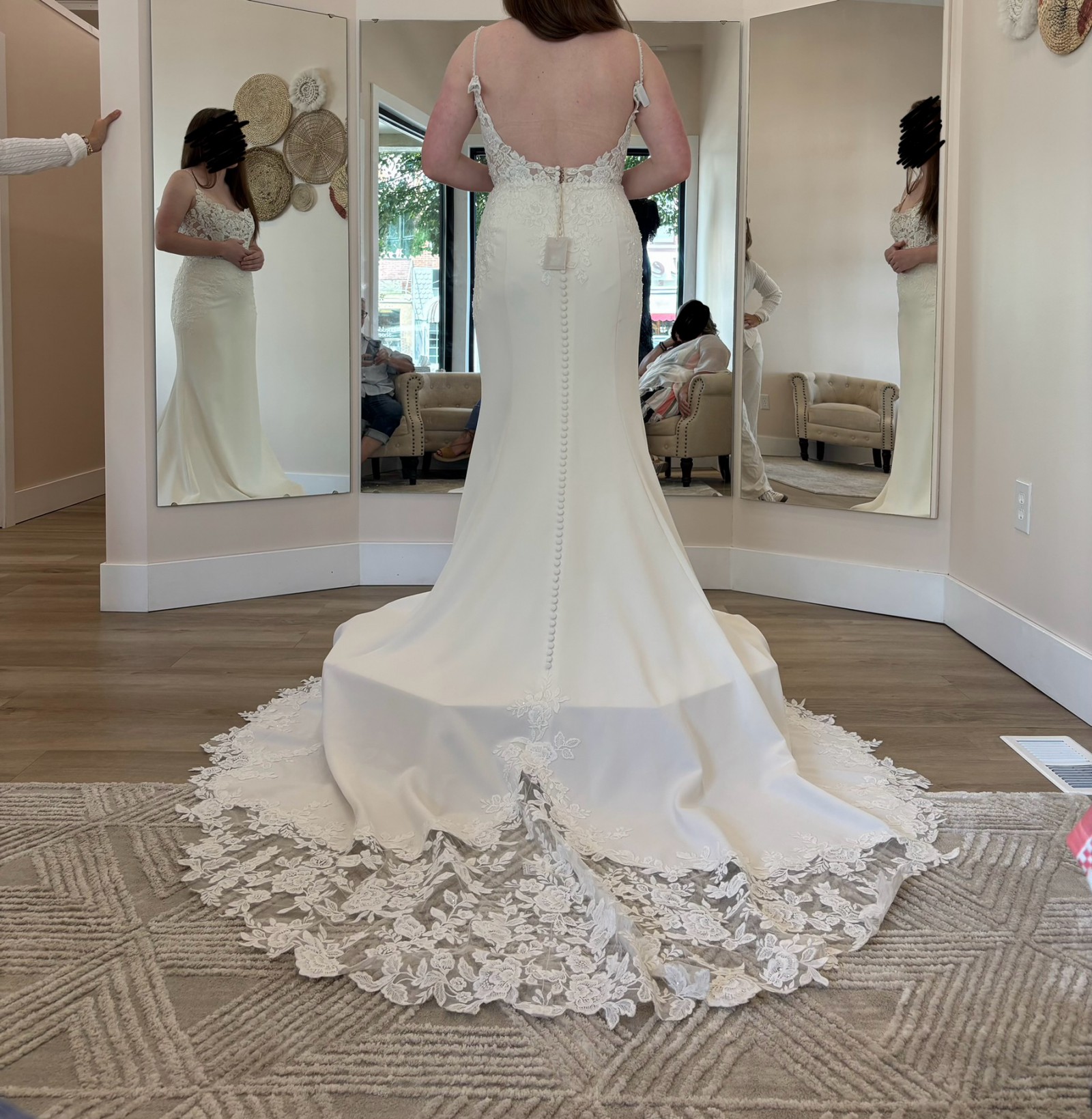Selling my beautiful unused wedding dress that I ended up not wearing after changing my mind on style. It was purchased off the rack and has never been altered or worn outside the boutique. Details: • Lined bodice for extra coverage — lining can be removed by a seamstress for a more sheer look • A few beads on the straps will need to be replaced • Stored safely in its original garment bag • Comes from a clean, non-smoking home • Original purchase receipt included It’s a stunning gown and deserves to be worn by someone who will feel amazing in it. Happy to provide measurements or additional photos!