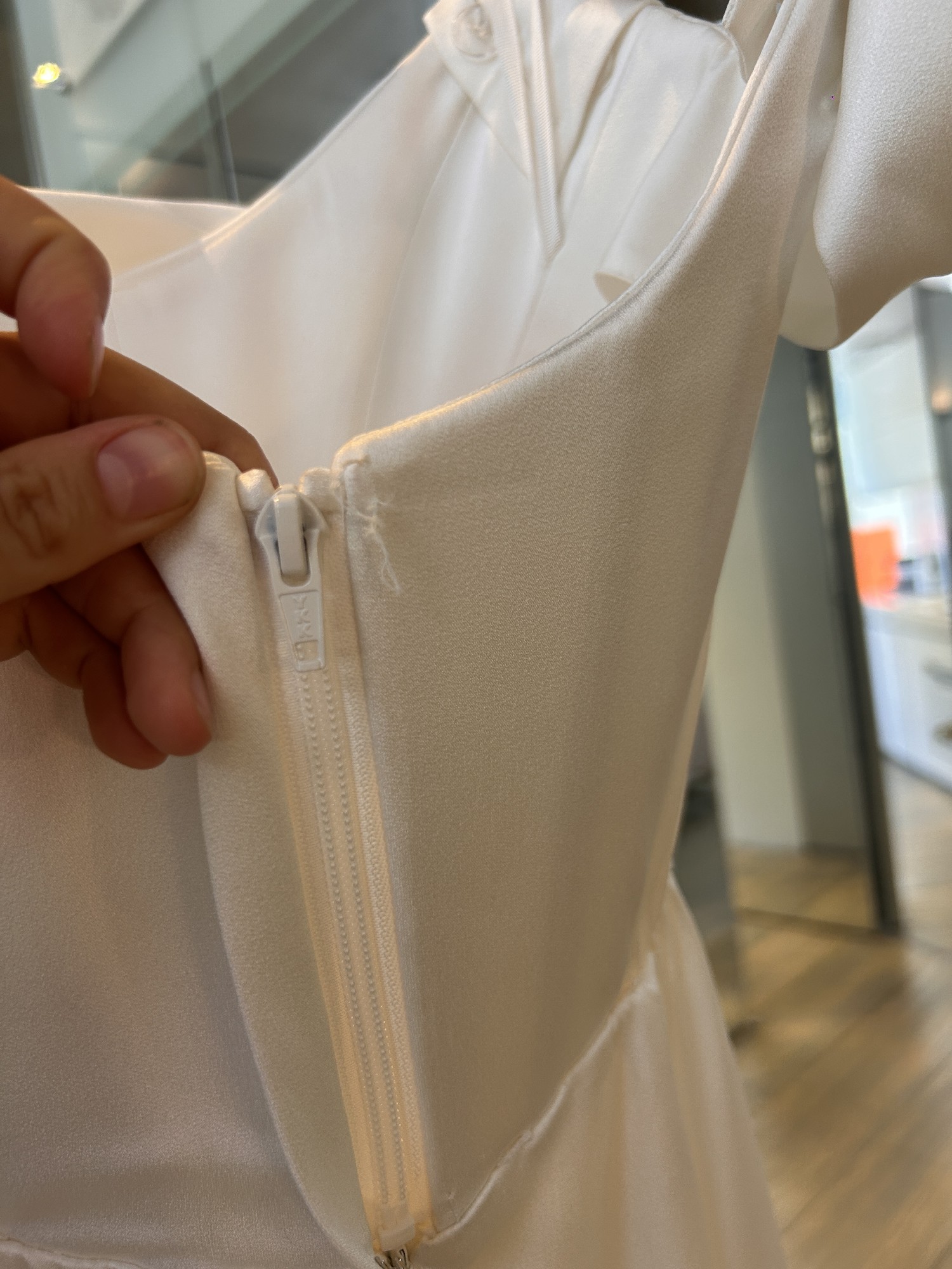 - Hook and eye loop needs replacement at back of dress