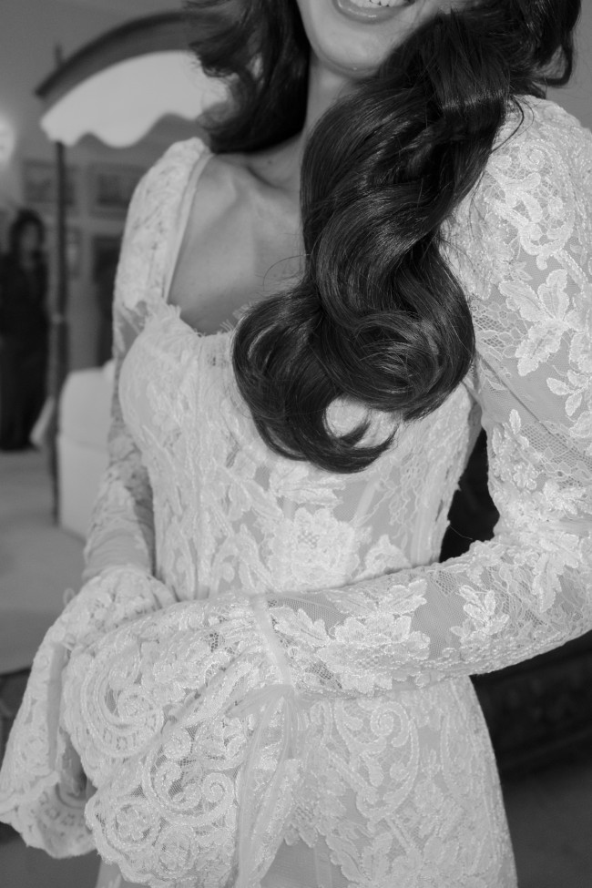 The gown includes dramatic flared cuff sleeves, a comfortable stretch lining, and the inbuilt signature Berta bodysuit. Released in bridal boutiques in Summer 2024, this style is Berta Privee 24-P101.