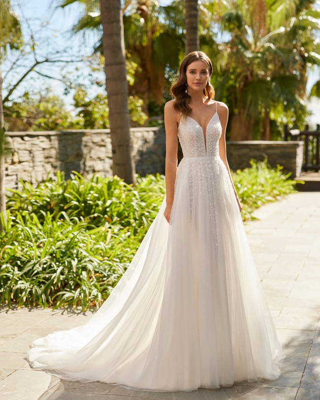 Hidra is a magical wedding gown from Adriana Alier is nothing short of a dream come true. The A-Line silhouette is incredibly flattering, gracefully floaty and comfortable to wear, allowing for ease of movement on your special day.