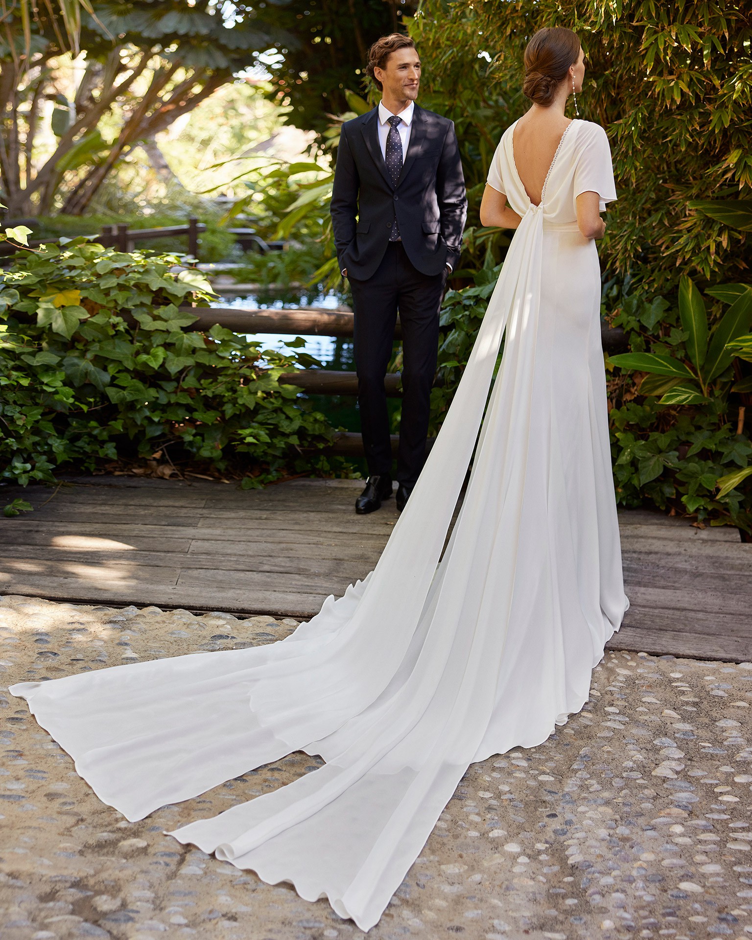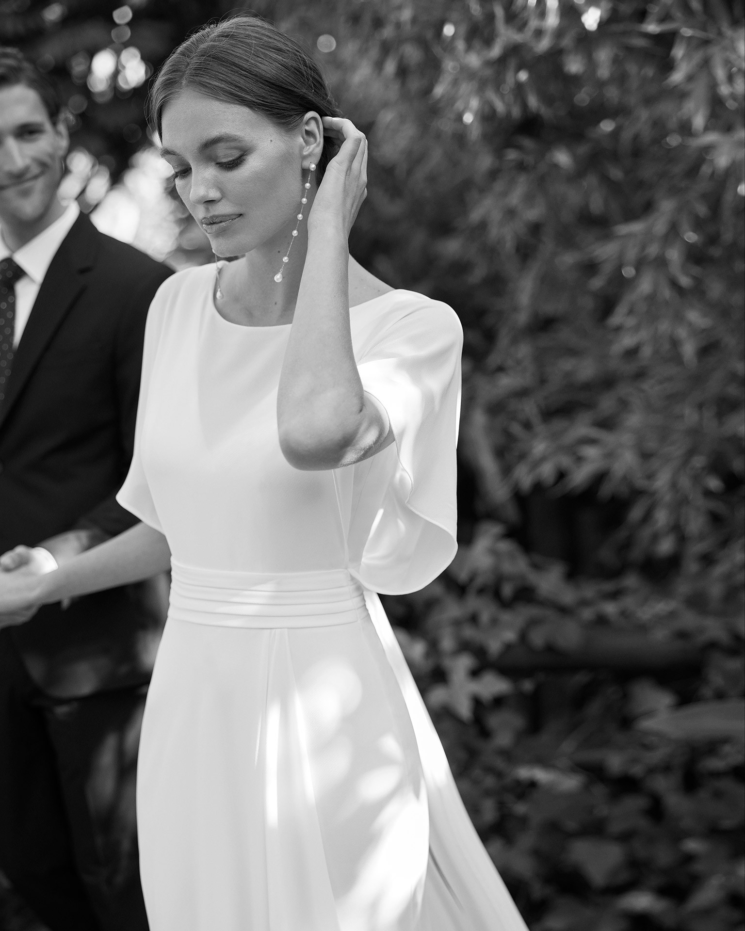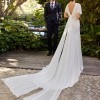 The soft floaty sleeves of this gown strike the perfect balance between sophistication and comfort, making it ideal for any season. The floor-length design creates a striking silhouette that flows effortlessly as you walk down the aisle and features a faux side wrap effect. The fabric feels luxurious against the skin and photographs beautifully, bringing a timeless quality to every moment.