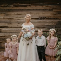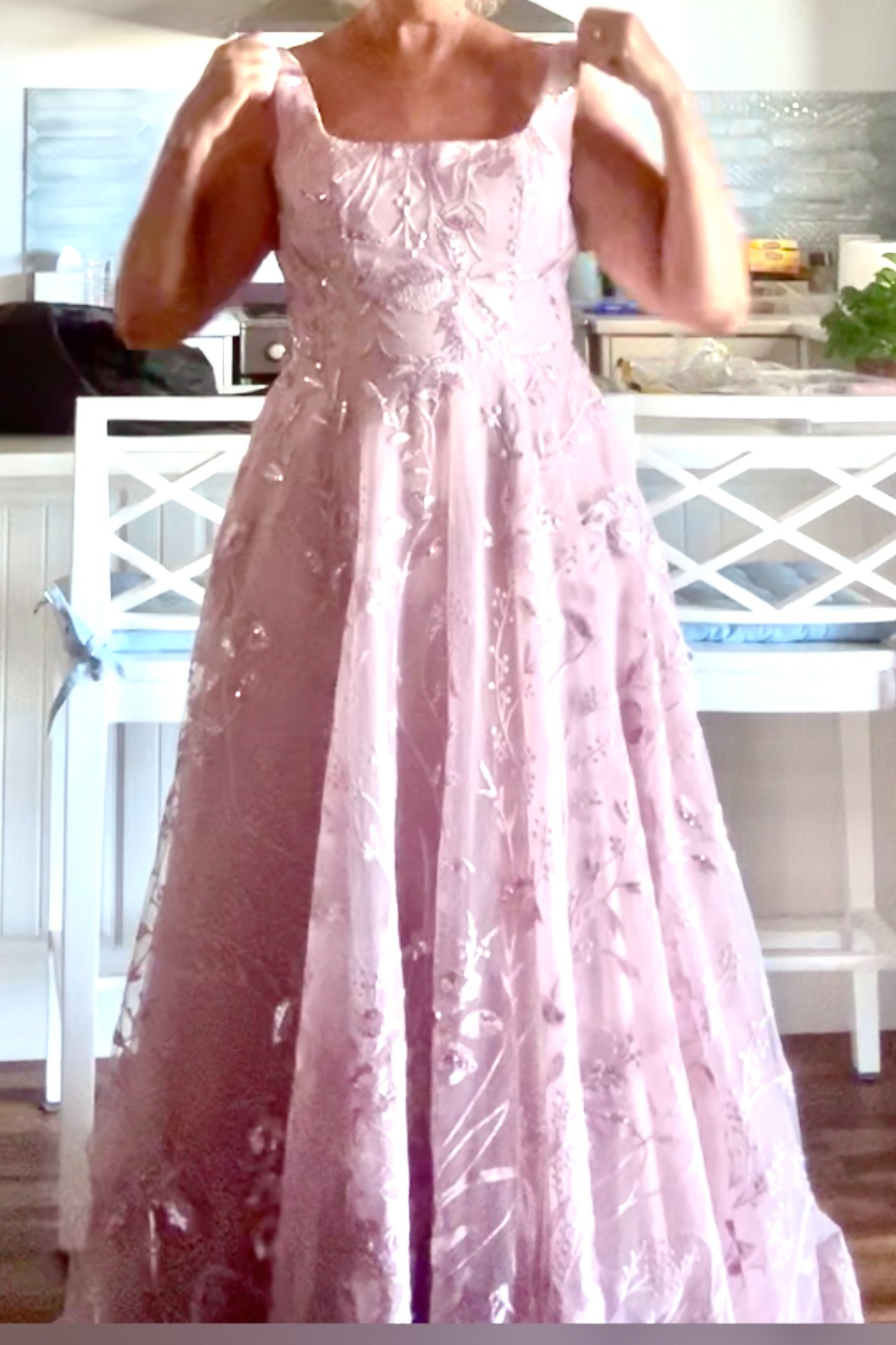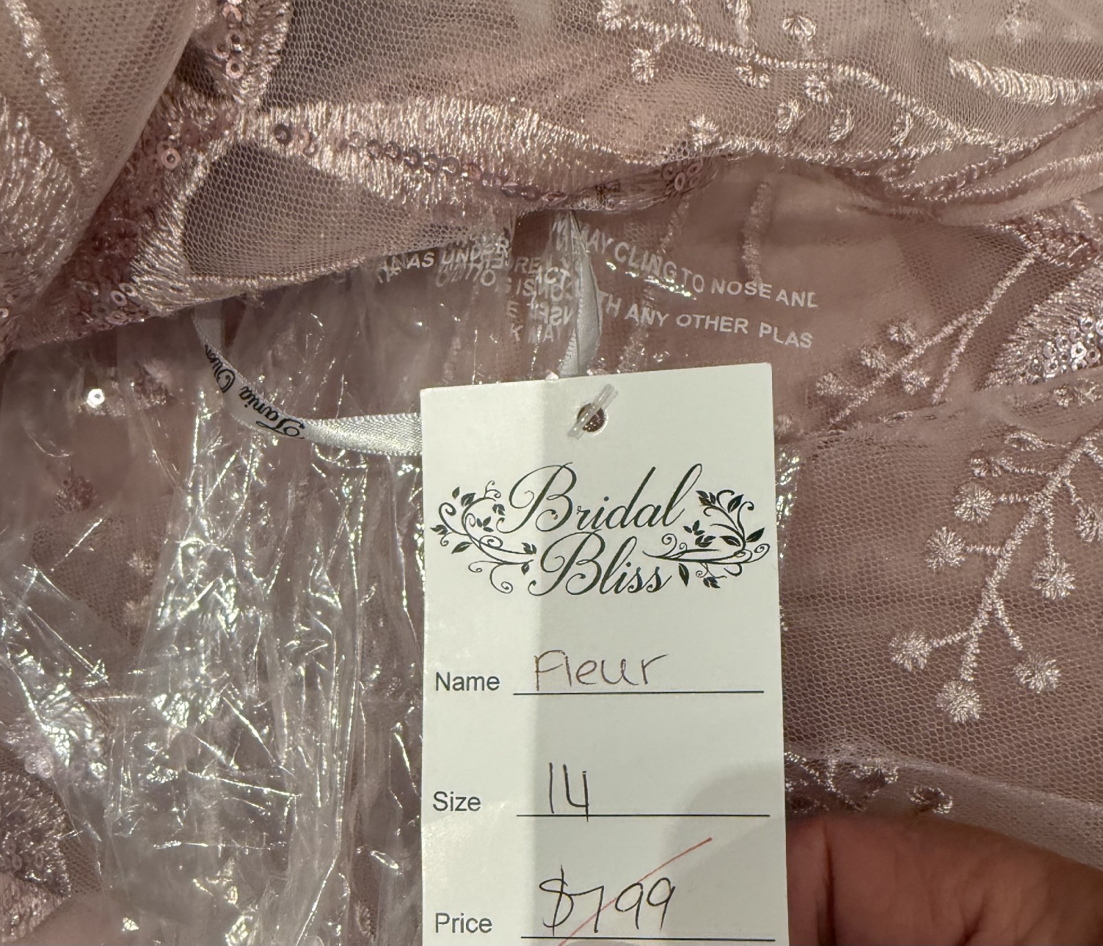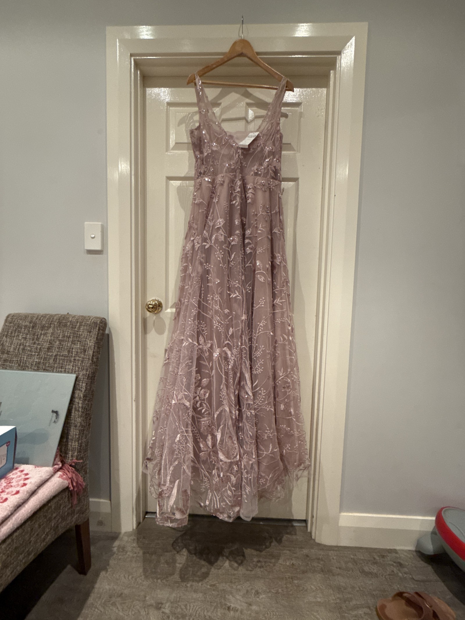 Beautiful dusky pink full length wedding dress. Zip up back