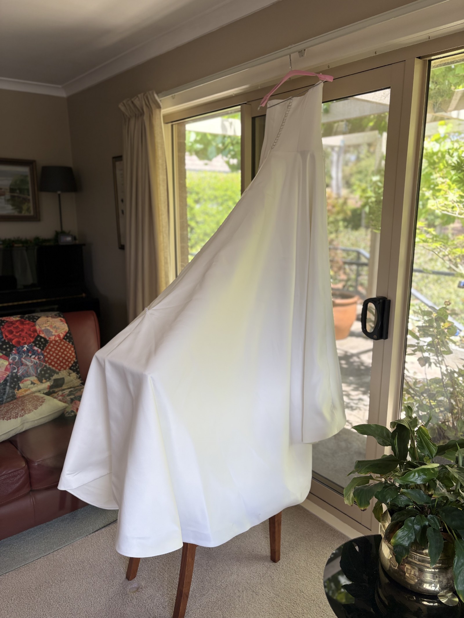 Purchased in 2025 from Mrs Fray for $6295 for my October 2025 wedding. Worn once and dry cleaned with Opal drycleaning and alterations. Some minimal marks on the hem remain but are not visible when wearing the dress.