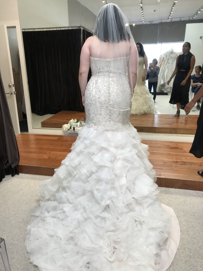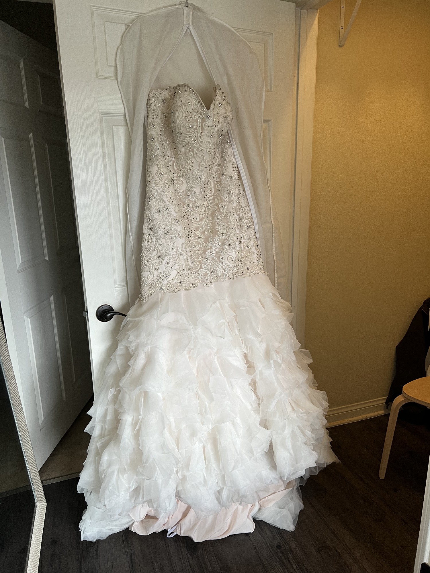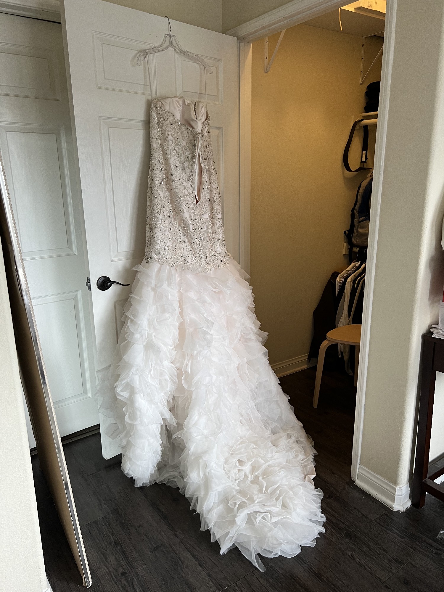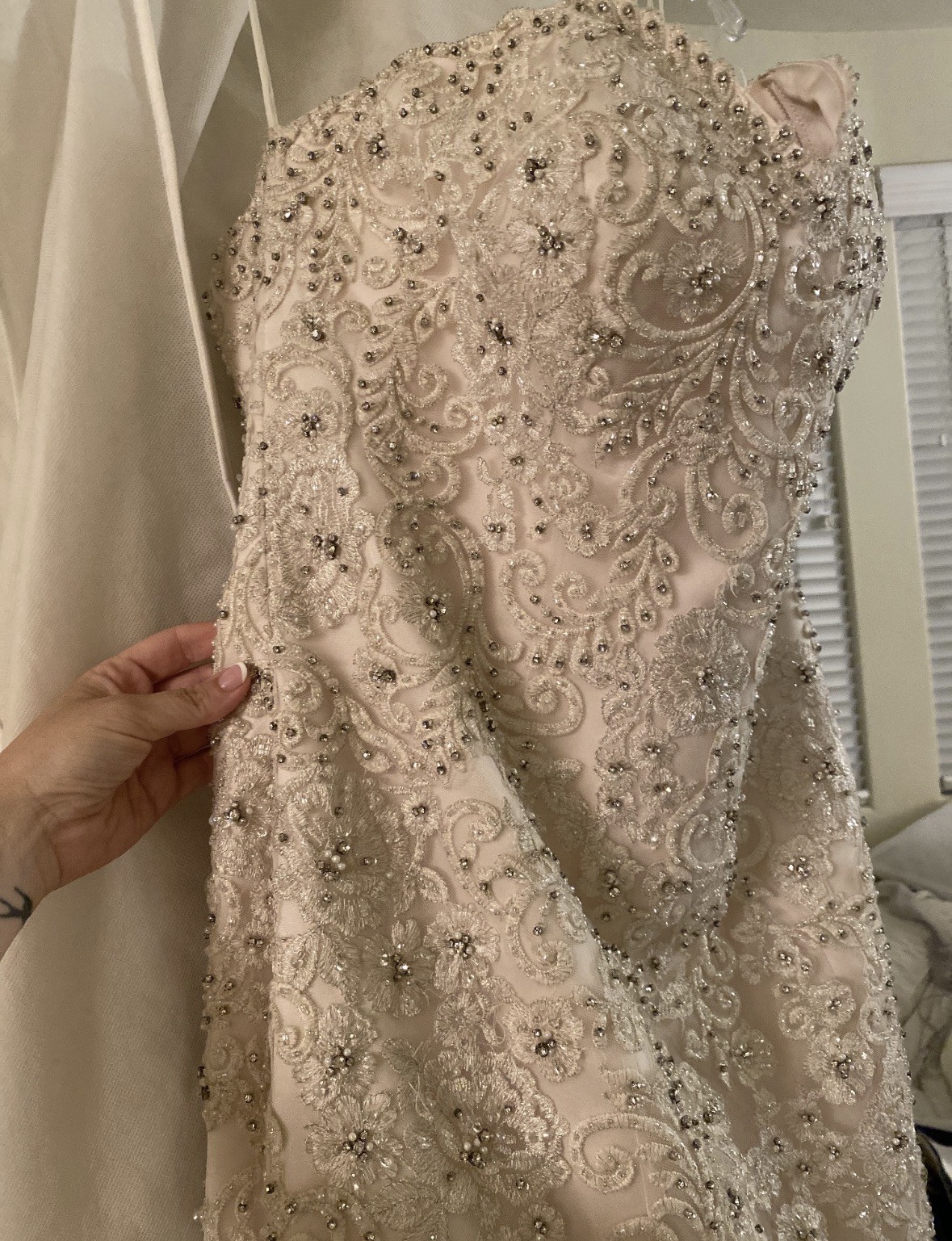 It’s a light pink but can pass as an ivory if you wanted as the beading on top of the light pink background is stunning. It’s considering pink/ivory/silver.