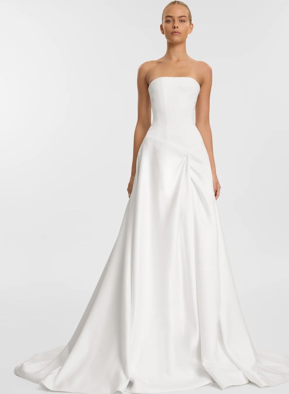 Aspen by KYHA Bride is a modern ballgown wedding dress with a bold Y2K twist, designed for brides who want to make a lasting impression. Crafted from luxe, luminous duchess satin, Aspen features a straight neckline and dropped waist bodice that beautifully sculpts and flatters the figure. Its soft A-line skirt sits elegantly at the low waist, creating a timeless silhouette with contemporary flair.