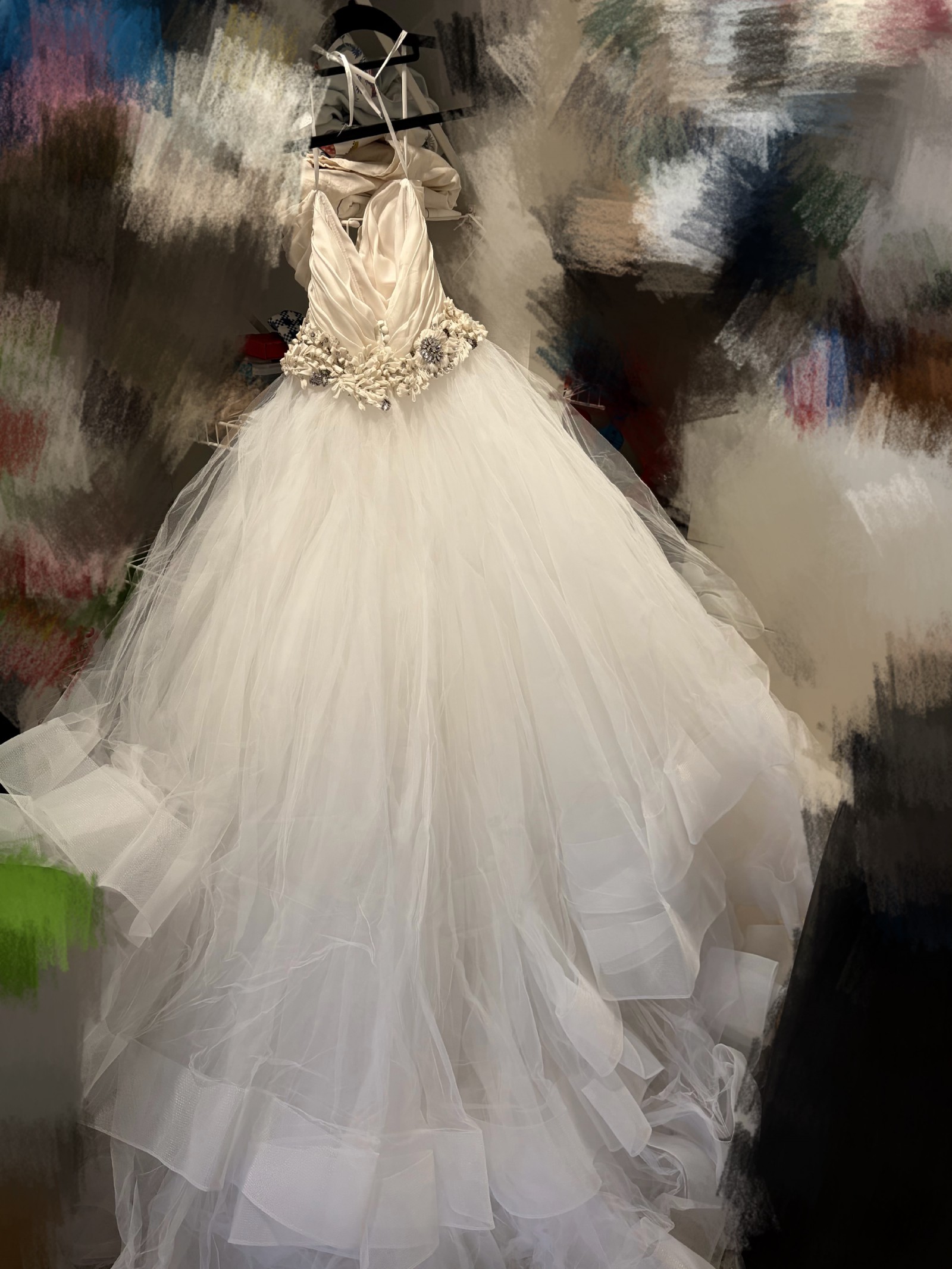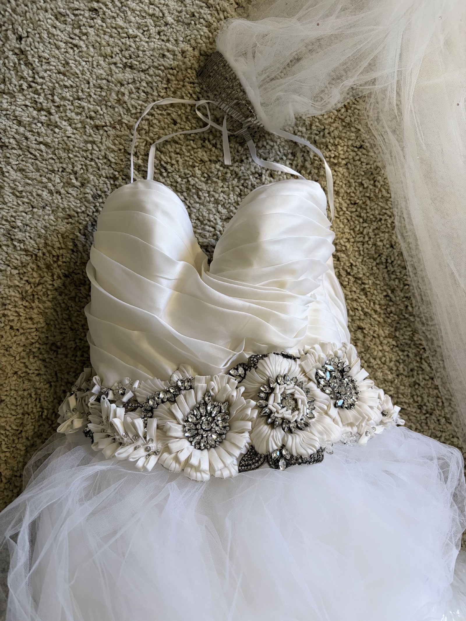 I wore this exquisite gown on my wedding day and felt like royalty. It carries with it all the love and joy of that unforgettable moment, and I hope it can bring the same magic to another bride’s journey. This is not just a dress; it’s a cherished memory waiting to be made again.