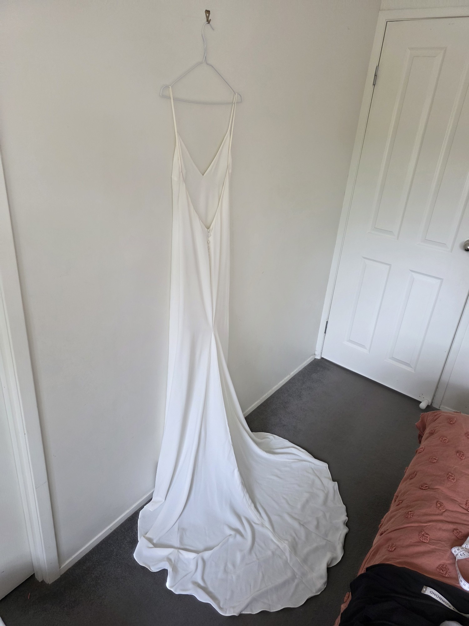 The dress was made in March 2020 and was originally meant to be worn for our wedding that same year. Unfortunately, due to COVID, our wedding had to be postponed to the following year. During that time, I had a beautiful baby girl and my post-birth body no longer suited the fit of this beautiful dress.