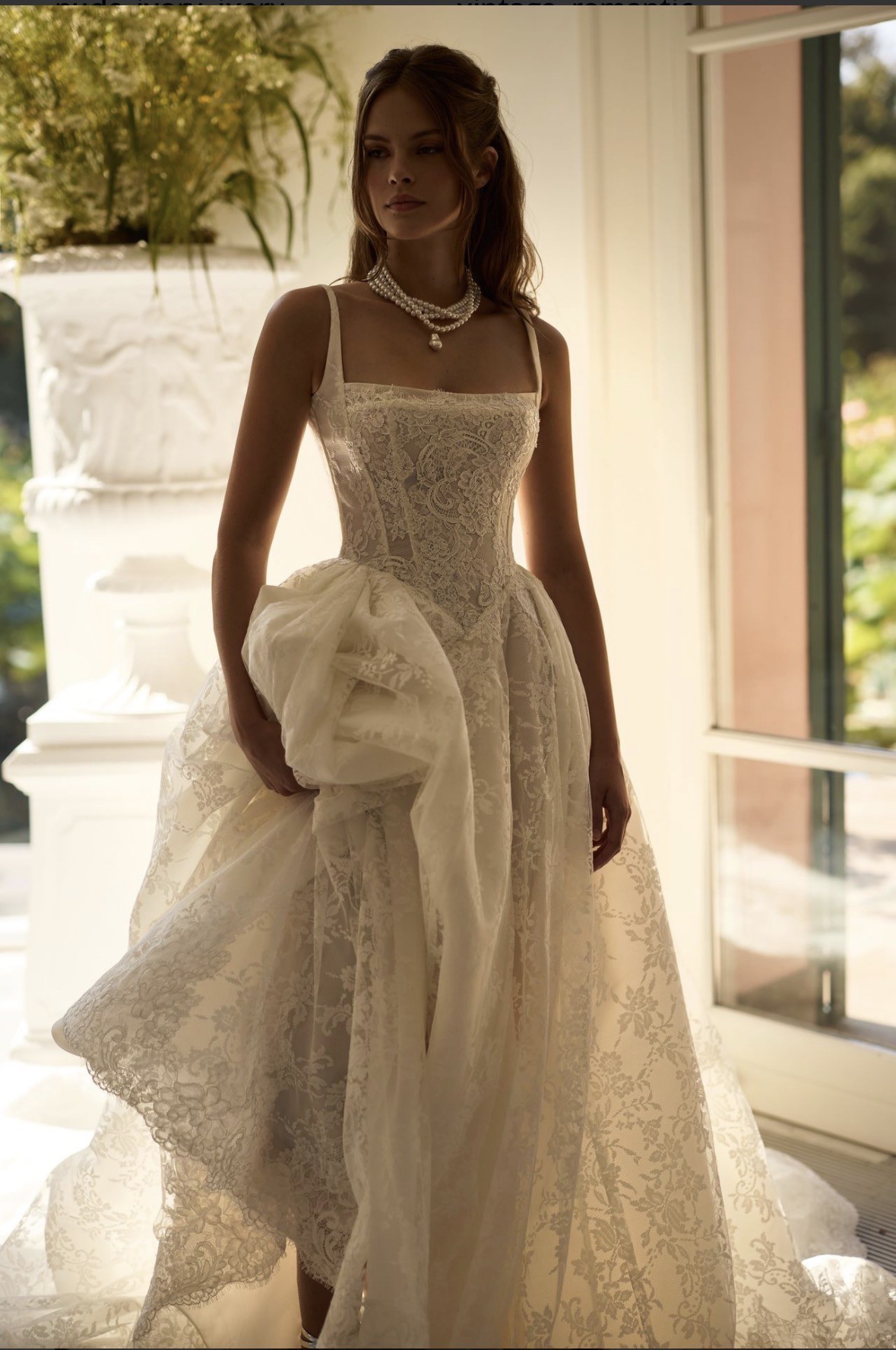 beautiful white basque waist dress, detailed lace. milla nova designer. never before worn!