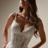 This Narissa gown by Sottero and Midgley was my absolute dream dress for my wedding day. The moment I slipped it on, I knew it was perfect. The A-Line silhouette is so flattering, gracefully accentuating my figure while allowing for effortless movement on the dance floor. The delicate V-neckline frames the decolletage beautifully, and the thin straps provide just the right amount of support without overwhelming the design.