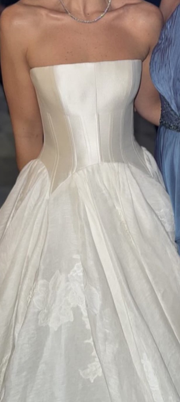 NEW never used dress. This dress has never been worn- brand new in DF bag/box. I custom ordered this for my wedding that I cancelled. The Leighton dress off the shelf is $13,990, however adding the strapless element cost another $2,000. So pre-tax it was $15,990. I also have a beautiful Danielle Frankel tule veil with a blusher that I would throw in free with purchase. Serious inquiries only.