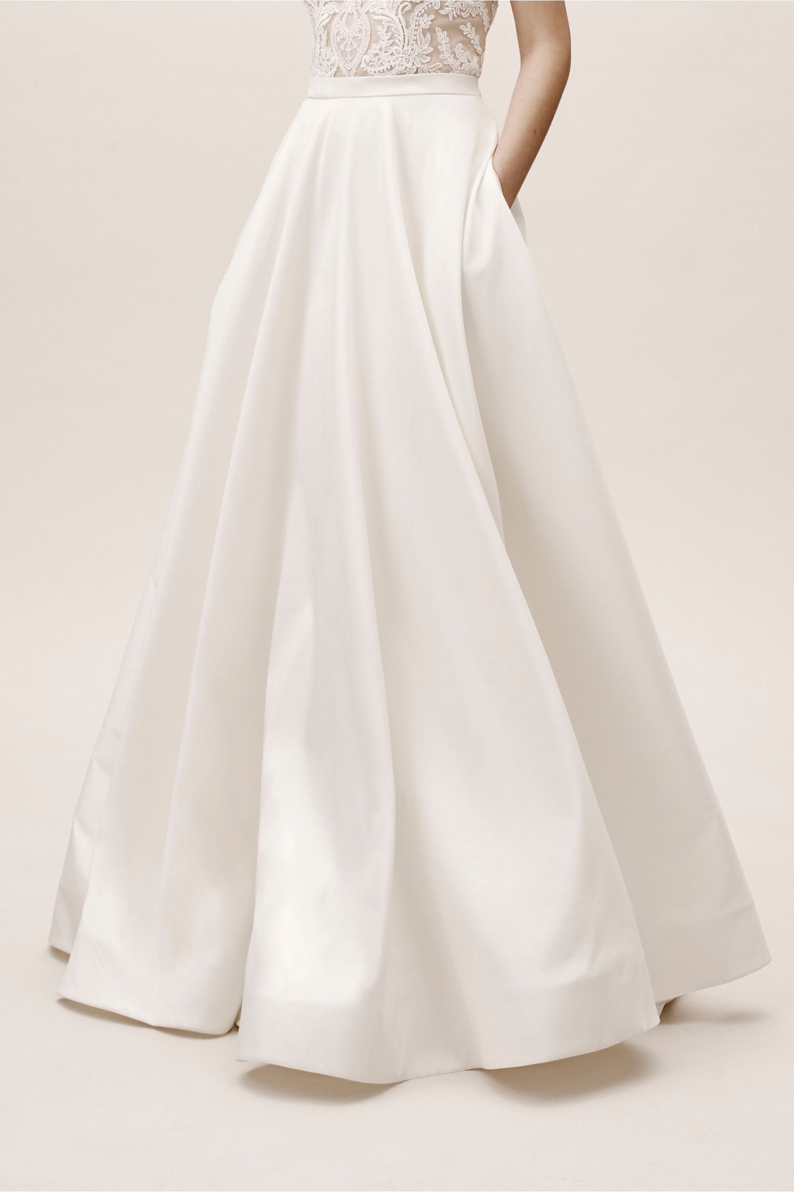 This lustrous skirt is cut from satin in a full A-line silhouette and finished with a dramatic train. An exclusive collection from Jenny by Jenny Yoo.