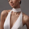 Crafted from Jenny Yoo's lustrous luxe satin fabric, the Jennifer Gown slinks beautifully over every curve, and thoughtful empire seam details form a languid silhouette. A plunge neckline reveals just the right amount of décolletage, balanced by a scarf, and a low v-back makes for a sultry exit.