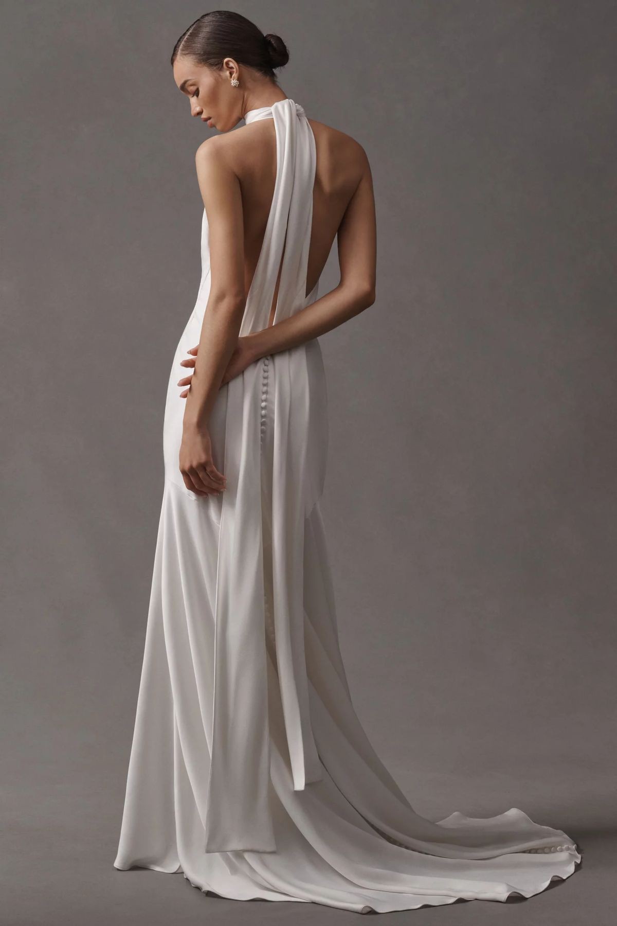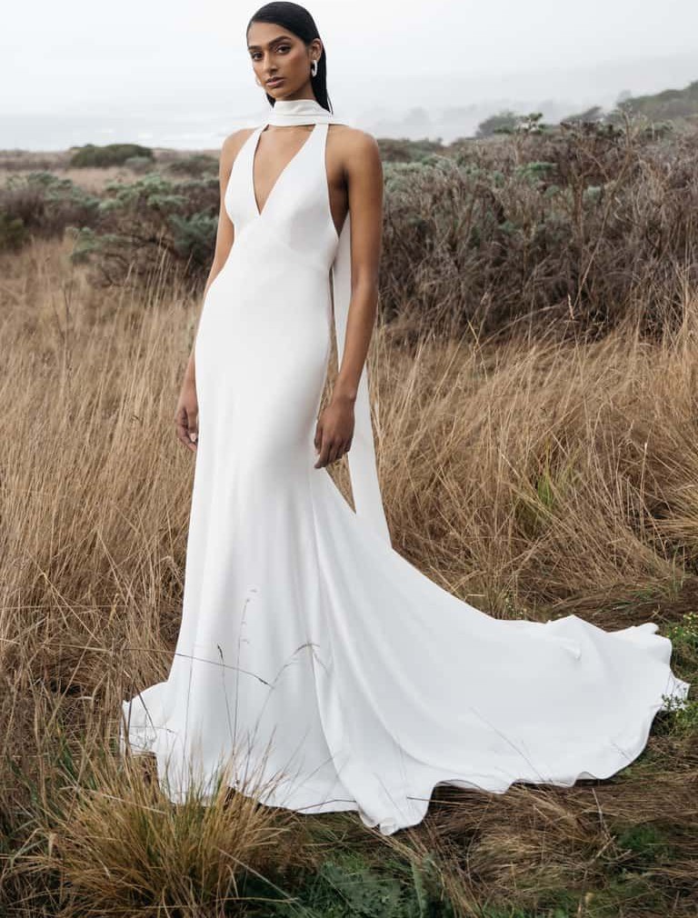 The Jennifer bridal gown evokes the effortless, cool girl style of a 90’s red carpet. Cut in our sumptuous luxe satin fabric, this slinky number highlights every curve while the plunging V neck and open back show off just the right amount of skin for a classically sultry effect.