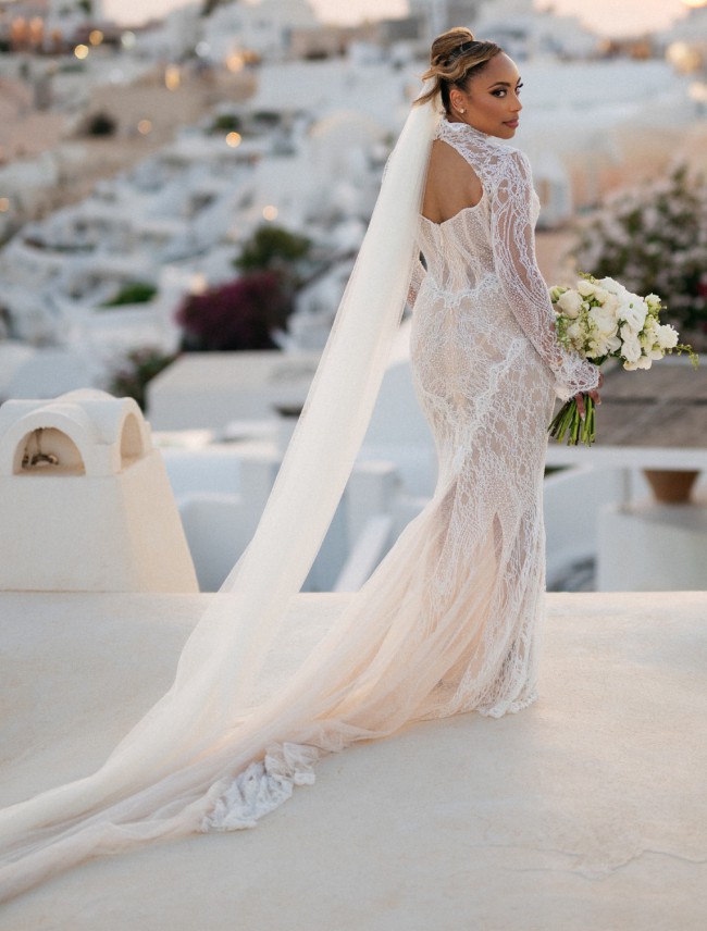 This Elysee dress from Galia Lahav is more than just a gown; it’s a masterpiece that transformed my wedding day into a fairytale. Crafted with intricate beading and stunning crystals, this enchanting mermaid silhouette hugged my curves in all the right places, making me feel like a vision of elegance and beauty.