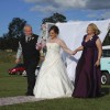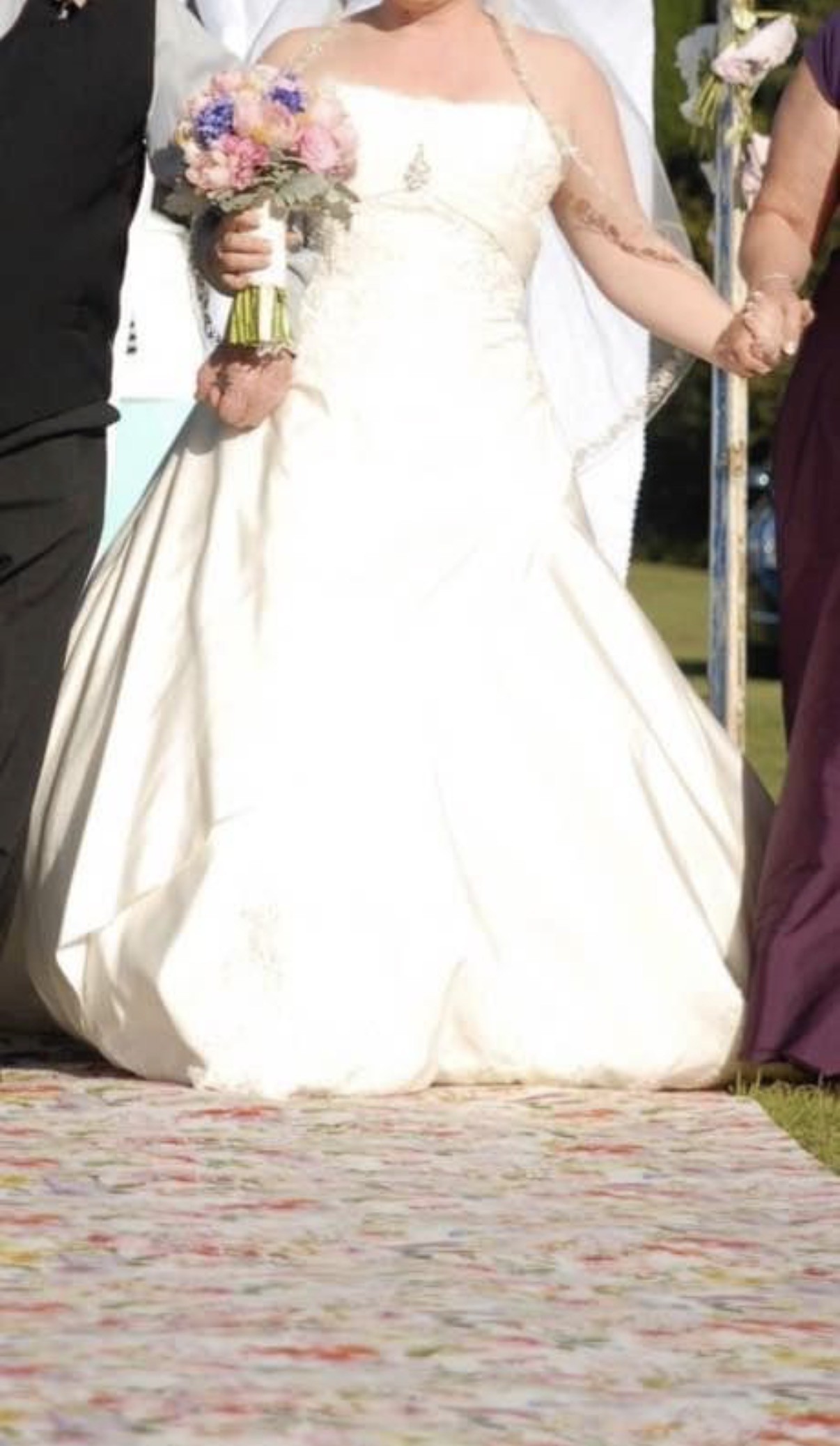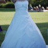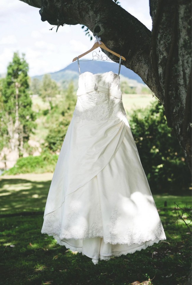 Dress - Lace and Beaded bodice with full length skirt, lace and beading to hemline and train of the dress. Wrap around style skirt and layered tulle. Size 16 has been dry cleaned.