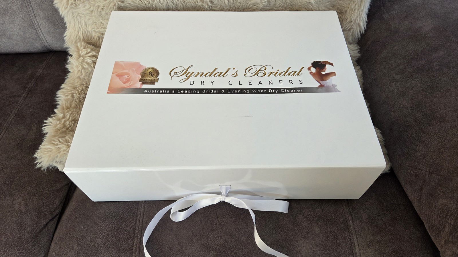 Dress is in EXCELLENT condition – no holes or stains. Worn for approx. 1.5 hours for ceremony only. Has been stored in an acid‑free preservation box from a specialist bridal dry cleaner to keep it safe and prevent any yellowing.