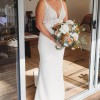 Embellished with delicate beading and sequins, this dress sparkles subtly in the light, ensuring that you’ll shine effortlessly as you walk down the aisle. The floor-length design creates an elongated look, allowing for a romantic flow as you move. The straps provide comfort and support, ensuring you can dance the night away without a worry.