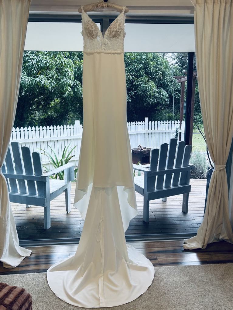 If you’re looking for a gown that beautifully combines classic elegance with contemporary flair, then this is the dress for you. As a mature bride, it made me feel elegant and beautiful on my special day.