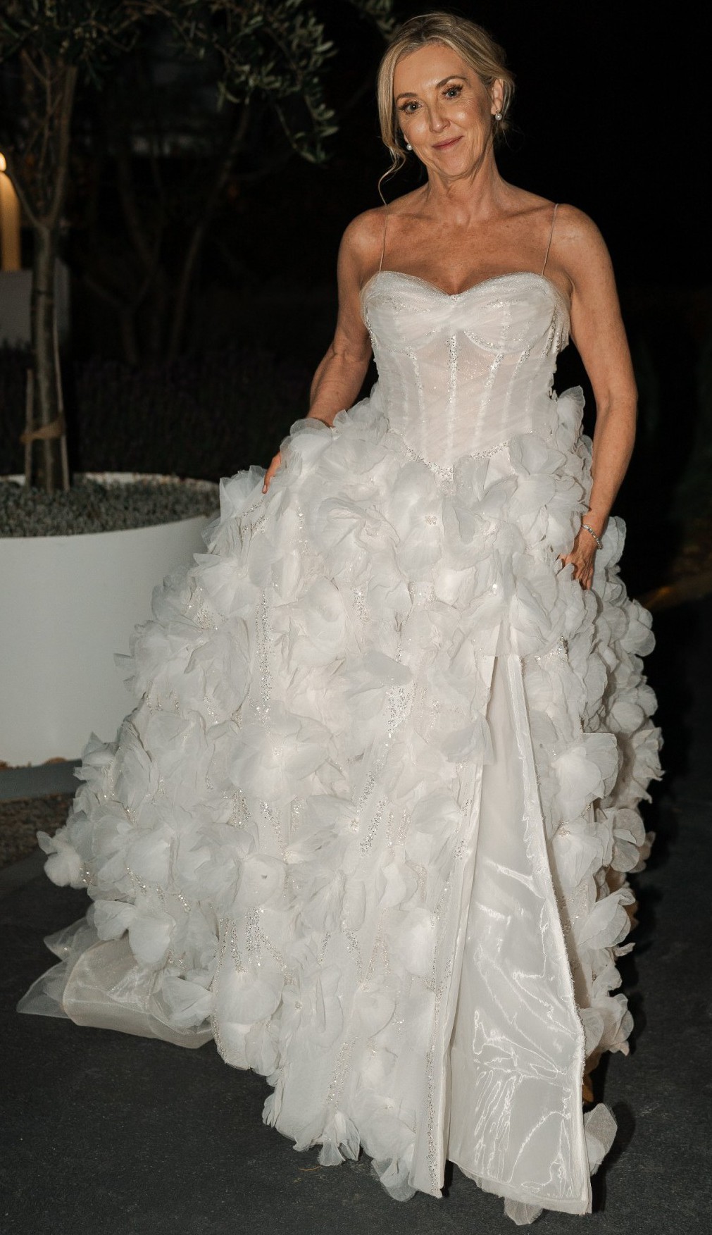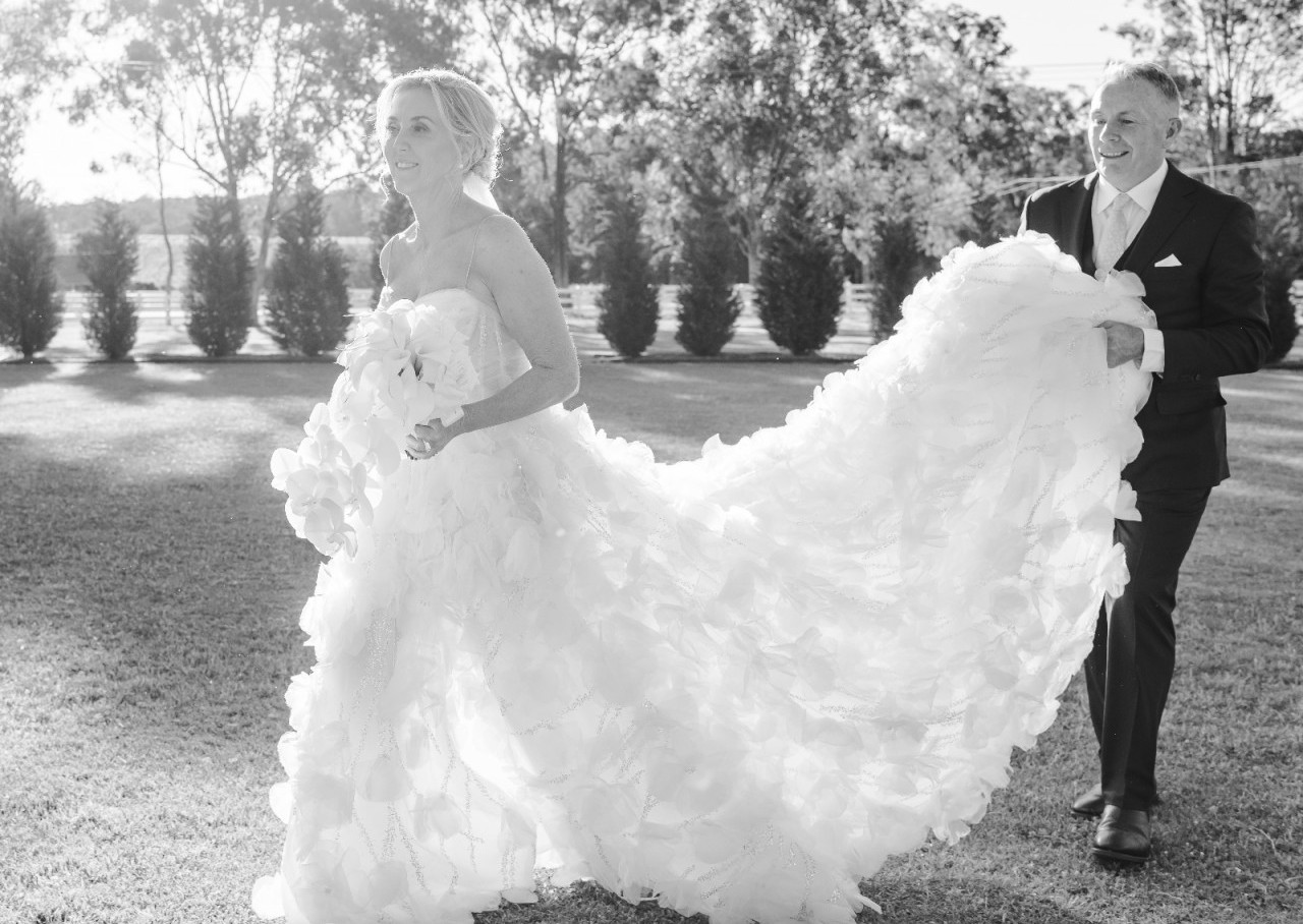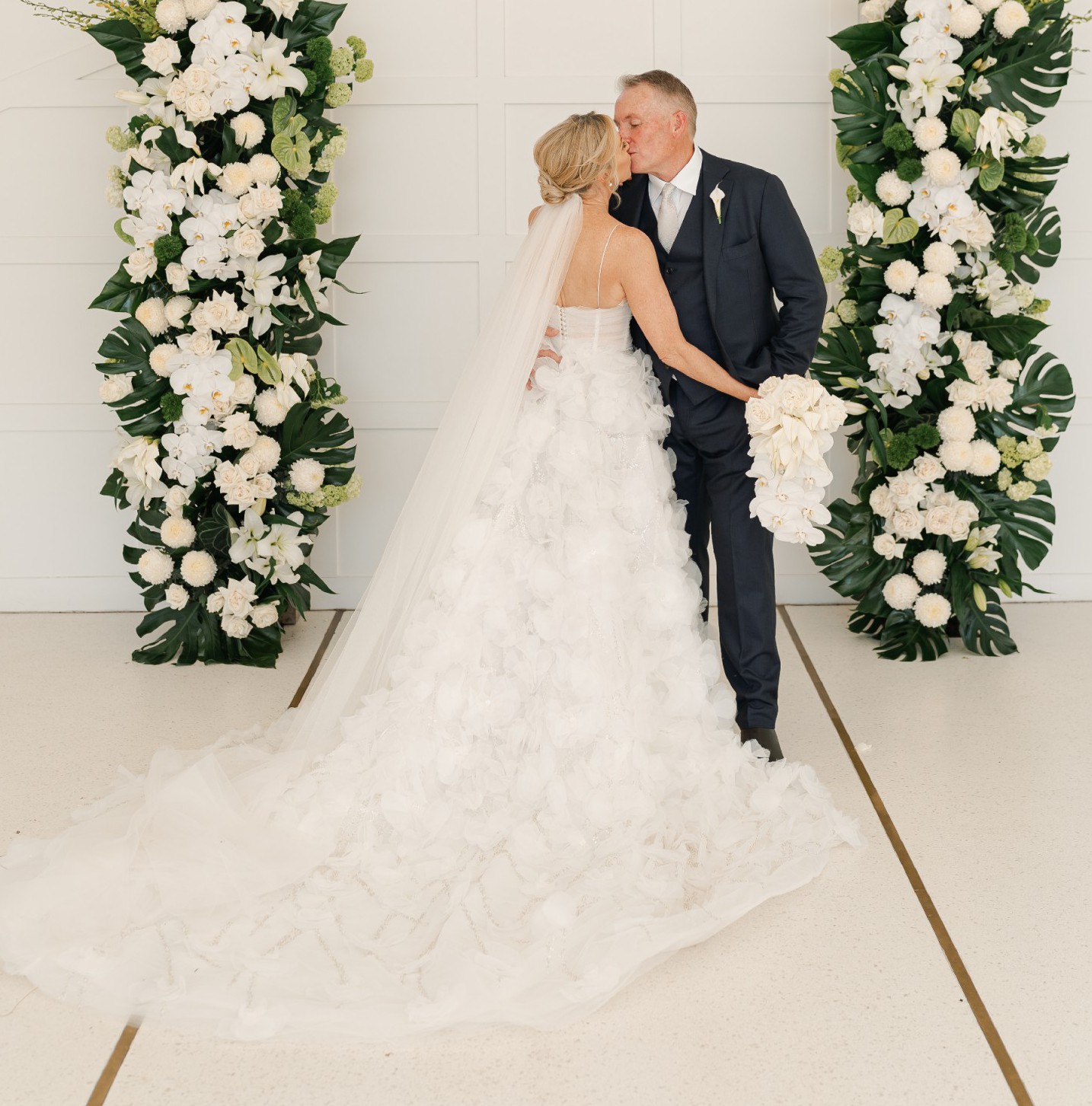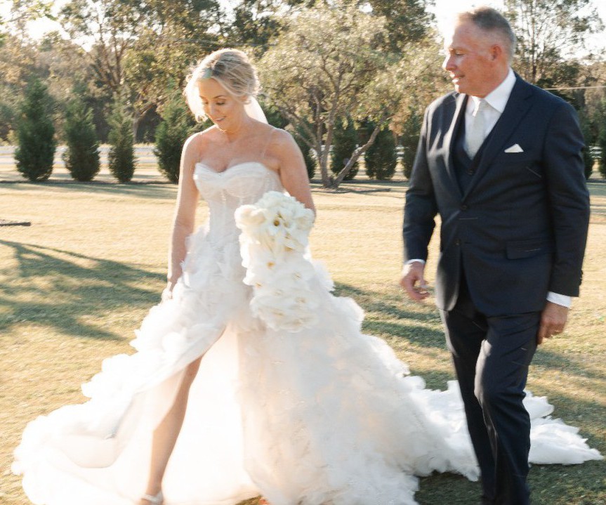As I walked down the aisle, the exquisite 3D flowers embroidered throughout the gown caught the light in the most enchanting way, creating a whimsical yet elegant effect that was admired by all. The floor-length design made every movement a statement, and I felt absolutely radiant.