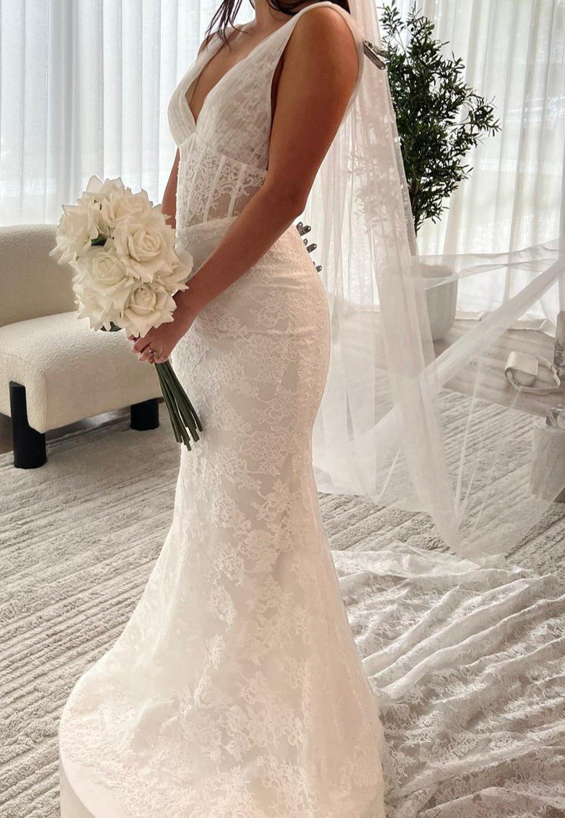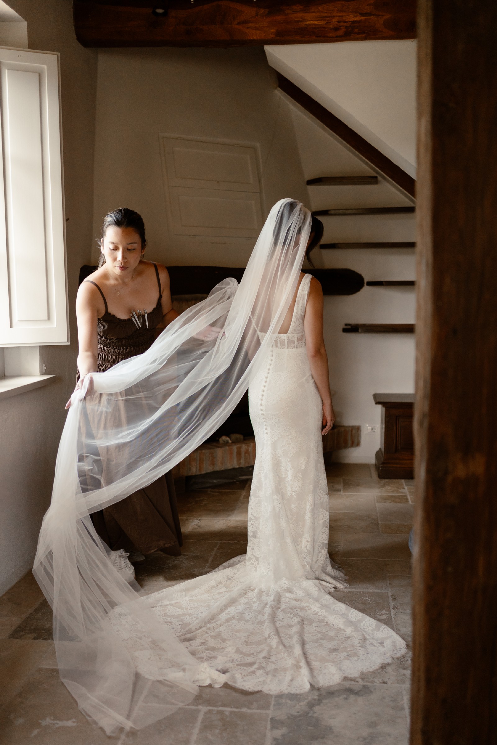 It is lightweight and very breathable which was important for an Italian summer wedding, and with the stunning fit and flare silhouette, I instantly felt like the most radiant version of myself. The delicate lace and intricate detailing are beautiful and the corseted top and in built cups provide excellent structure and support. I did also wear boomba inserts to ensure no gaping.