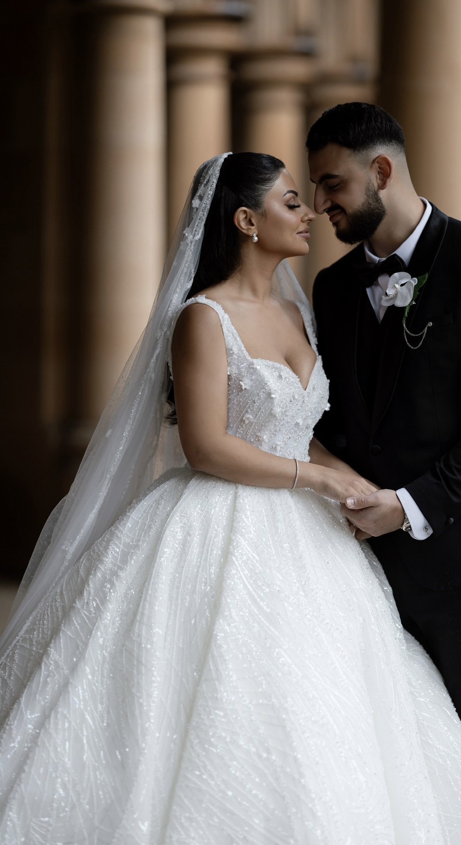 This exquisite Thomas Lazar wedding dress embodies the fairytale elegance every bride dreams of. With its stunning ballgown silhouette and romantic sweetheart neckline, it flatters the figure while offering an air of timeless sophistication. The beautiful mid-back design, accented with delicate straps, adds just the right amount of allure.
