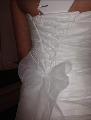 Also includes a complimentary ivory veil, it does have a slight unnoticeable flaw.