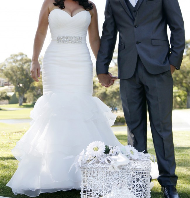 This dress has been drycleaned and is in excellent condition, ready to make someone else's wedding as special as mine was. If you want to feel stunning and unforgettable on your big day, this dress may just be the one for you.
