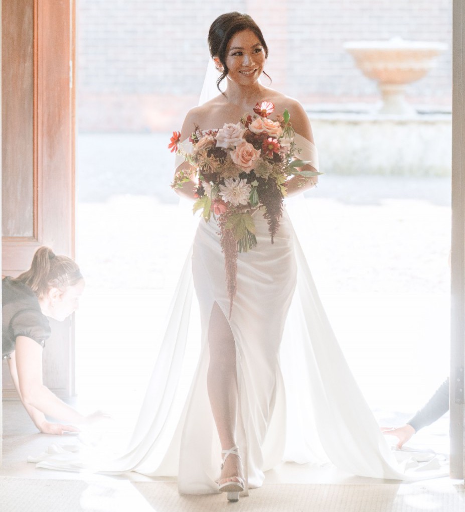 To elevate this gown even further, the overskirt brings a touch of grandeur and can be removed for a more streamlined look during the celebrations. The dress will also come with detachable sleeves, so you can really mix it up throughout the day - pinning up the dress to allow ease of movement.