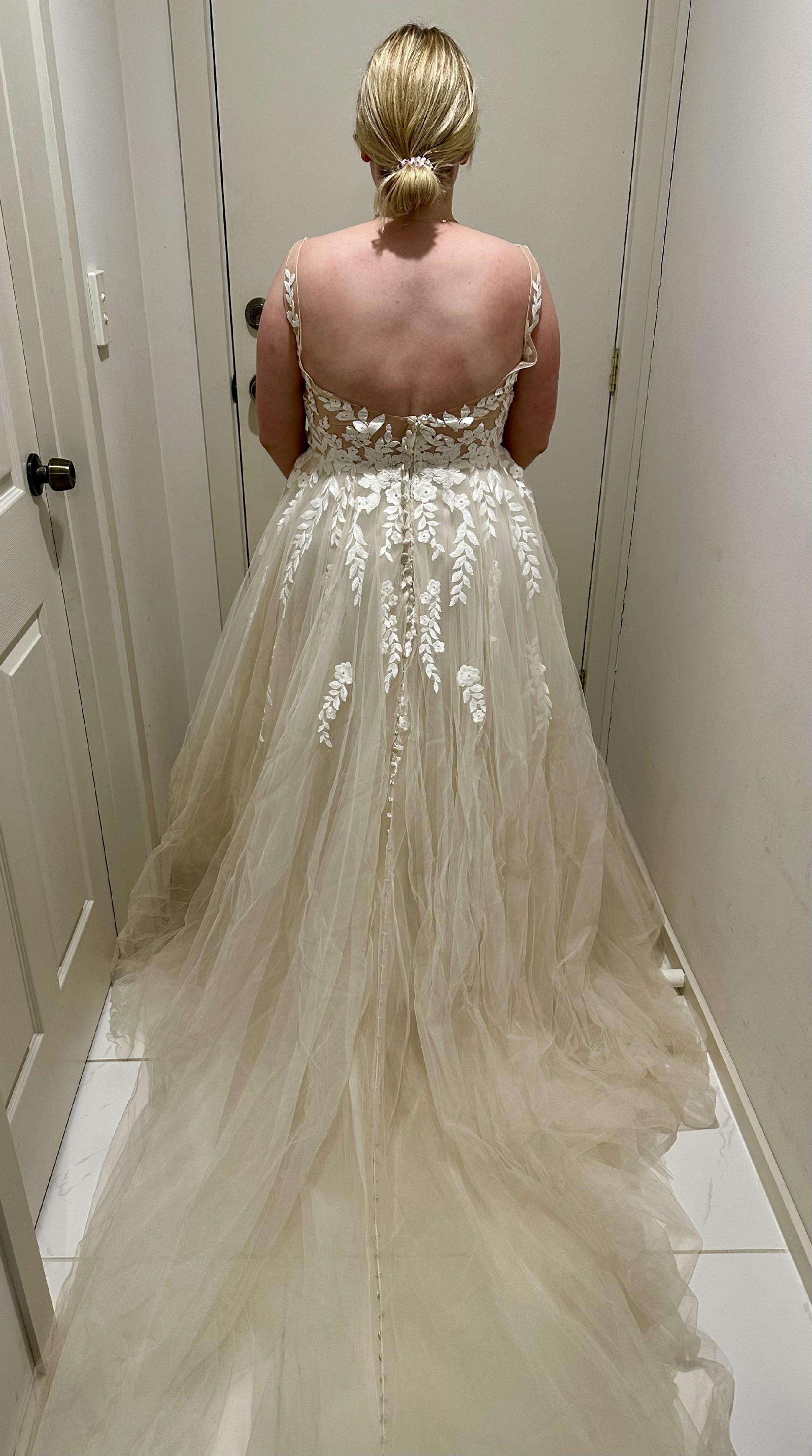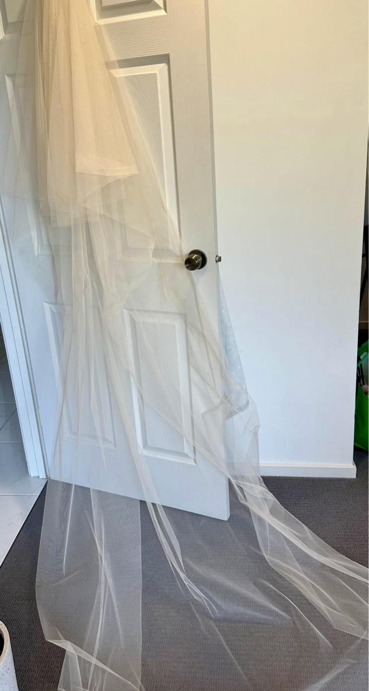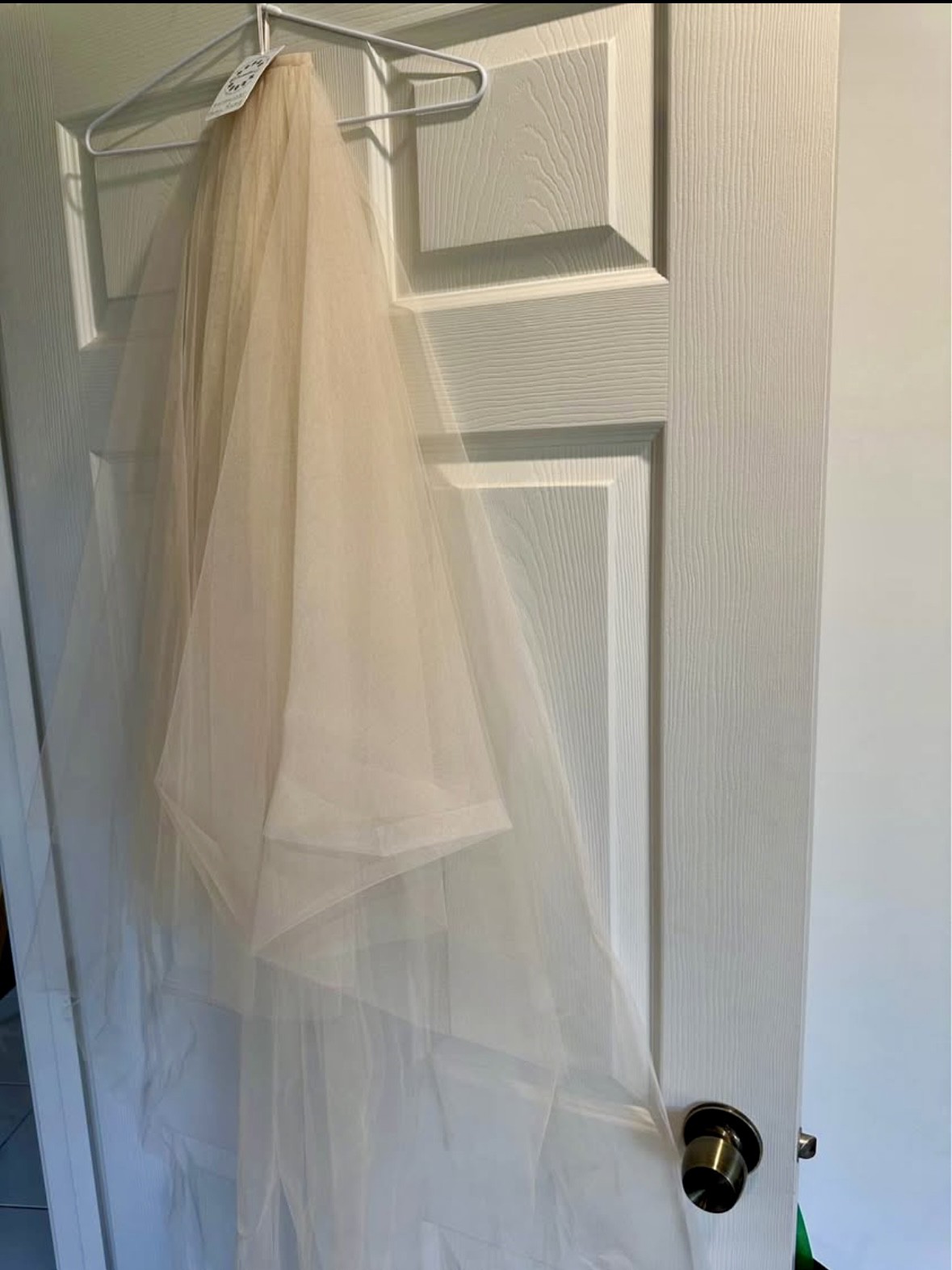 I have a mocha/nude tulle veil to match which was also never worn.