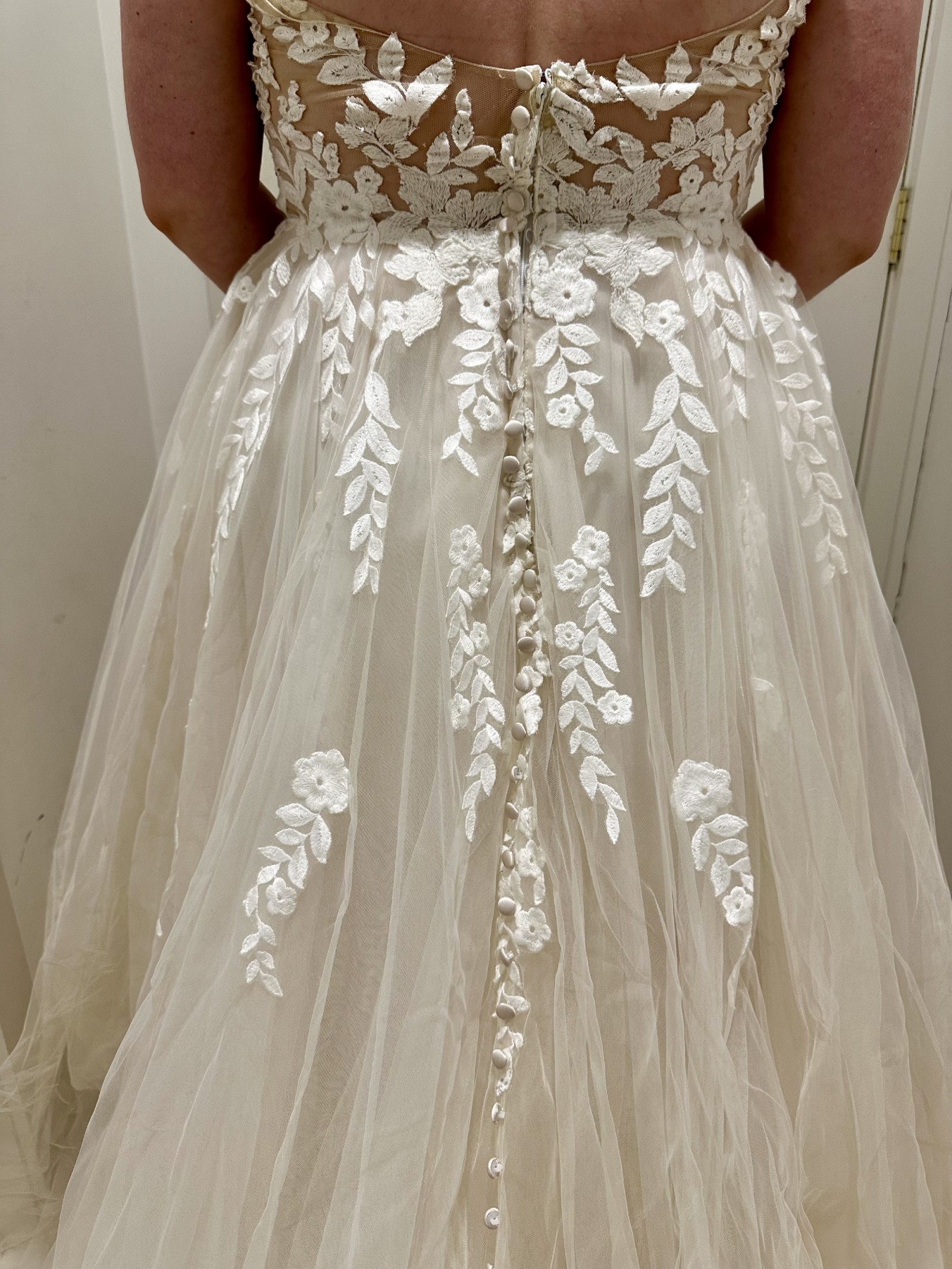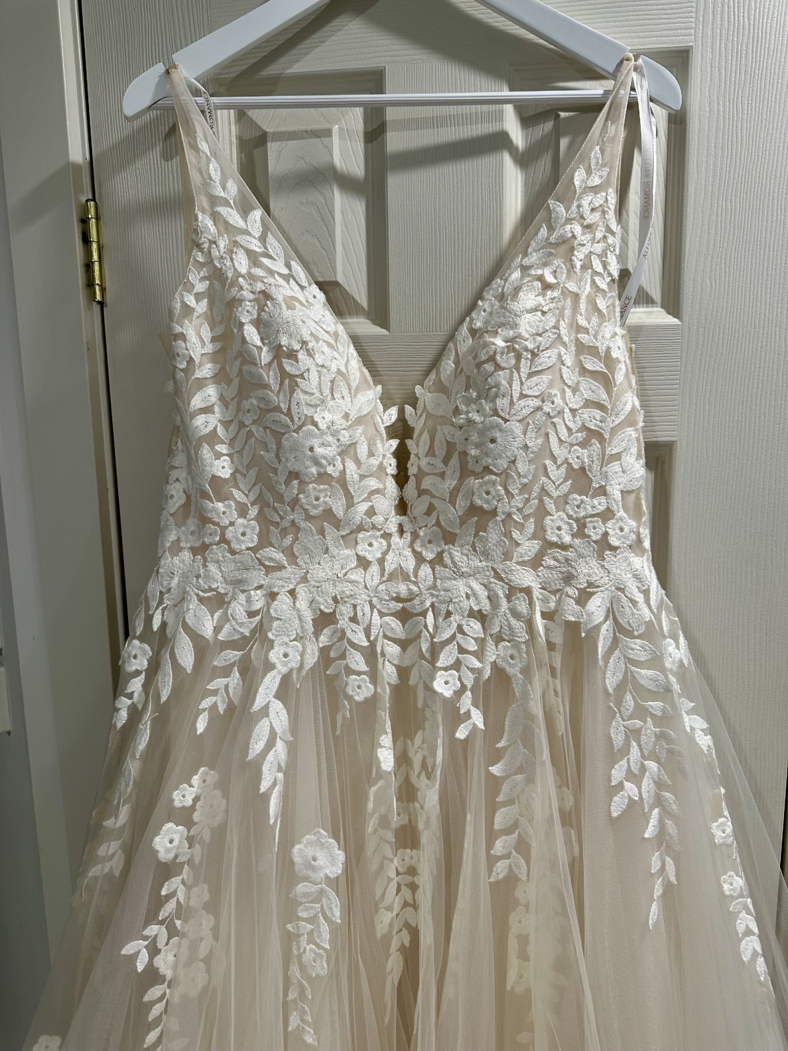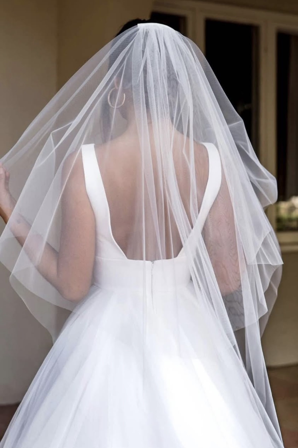 I have a mocha/nude tulle veil to match which was also never worn.