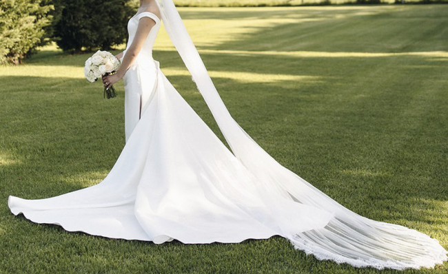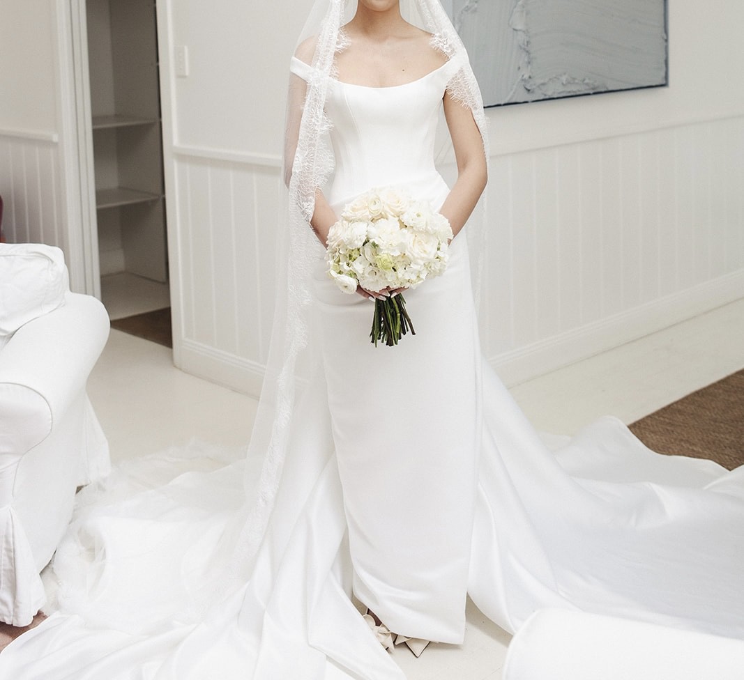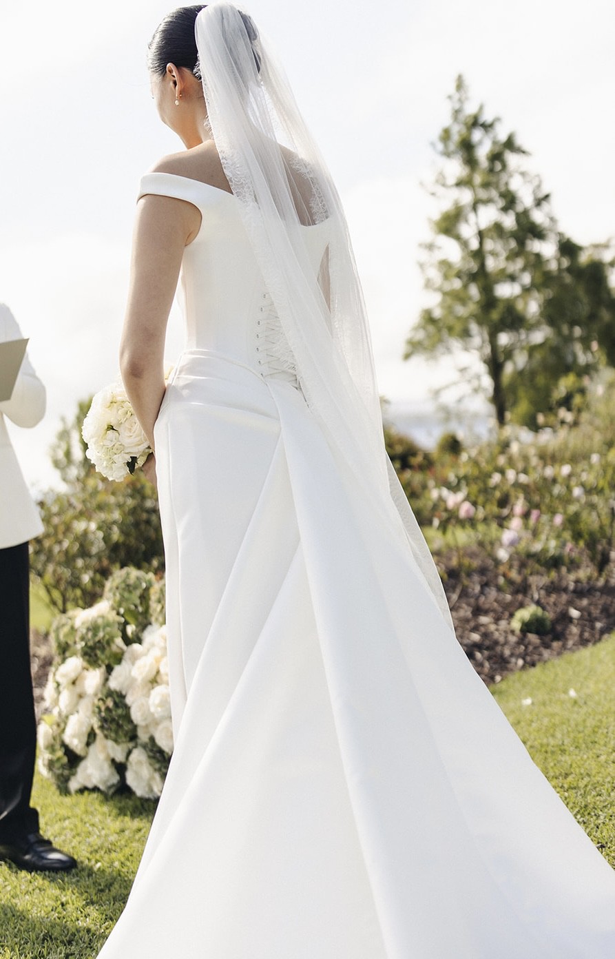 PLEASE NOTE: I had the long train detached and the seamstress added three hooks so you can wear it both on or off - attached for the ceremony and photos, and then it comes off for dinner and partying! Please see last two photos for how to attach.
